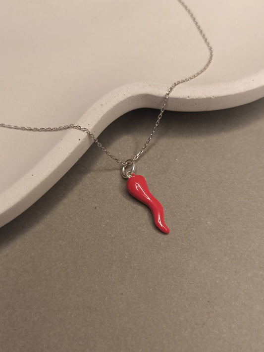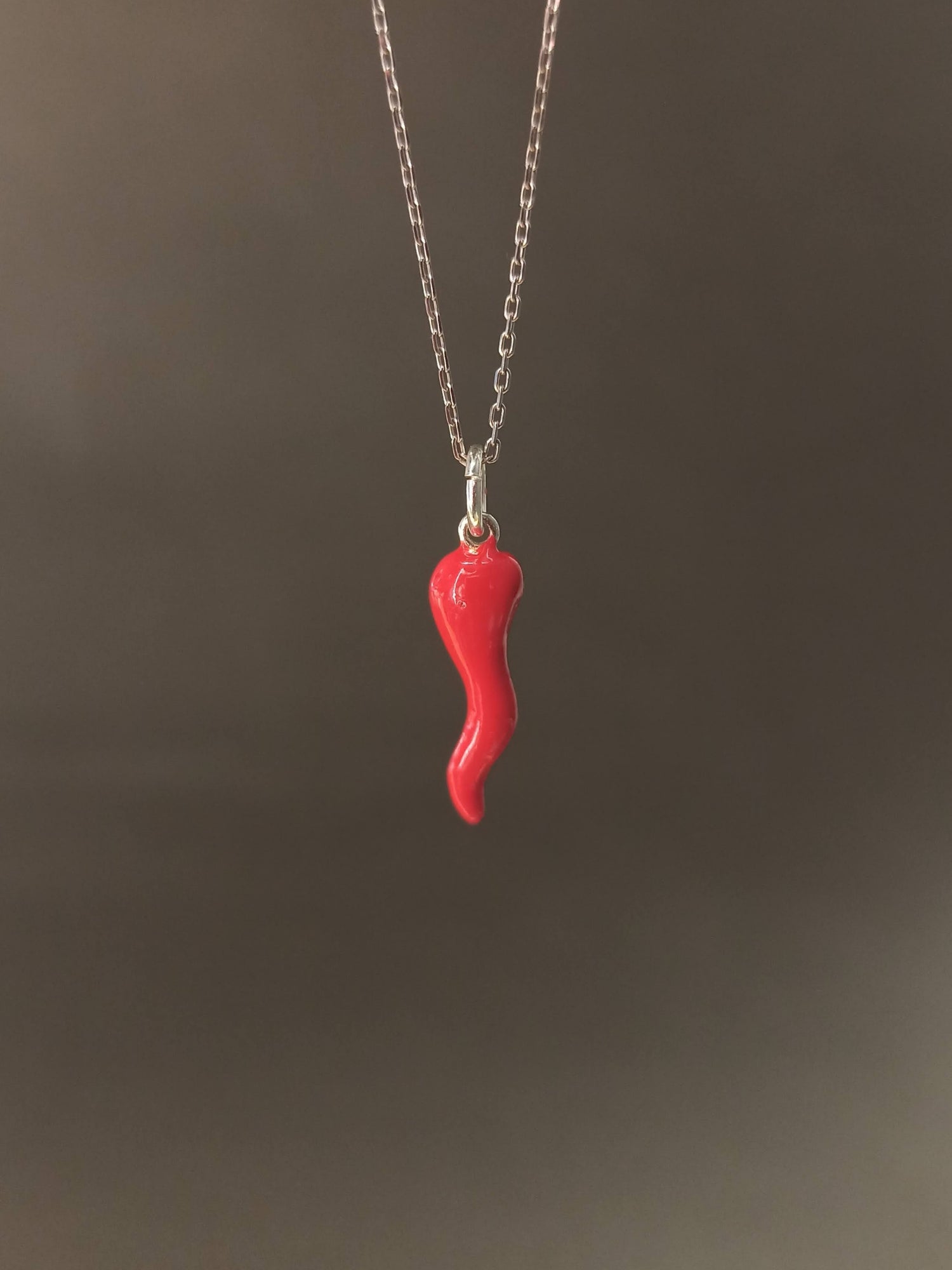 Gümüş Kırmızı Cornicello Kolye, İtalyan Şans Boynuzu