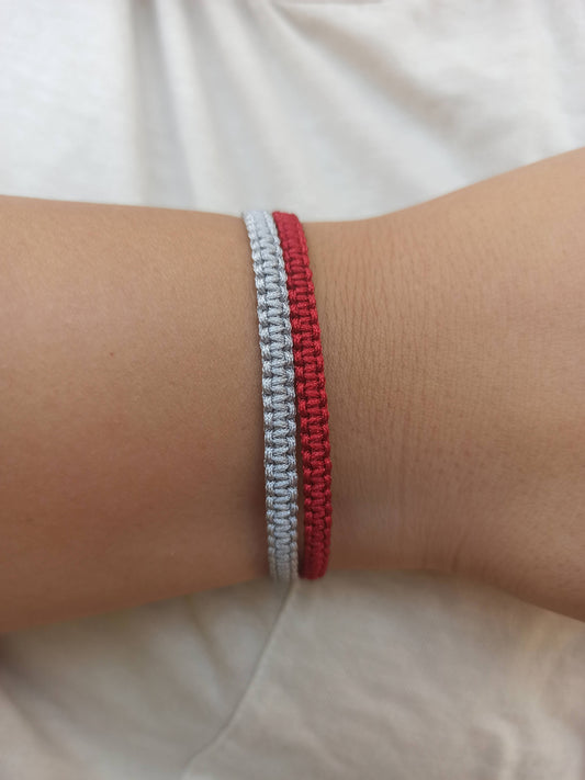 2'li makrome ipli bileklik seti , bordo ve gri
