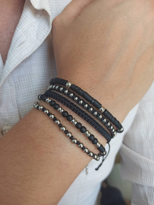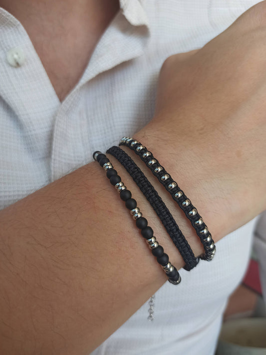 Kararmaz çelik ve siyah onyx erkek bilekliği seti 4'lü
