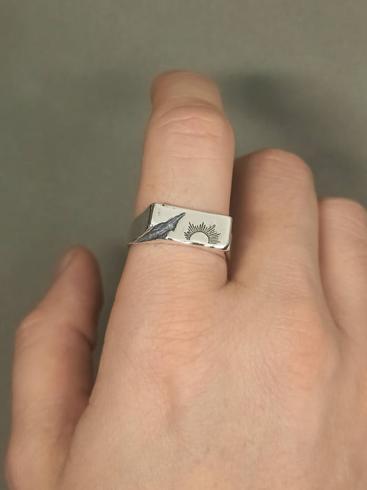 TükendiGüneş Motifli Gümüş Erkek Yüzük