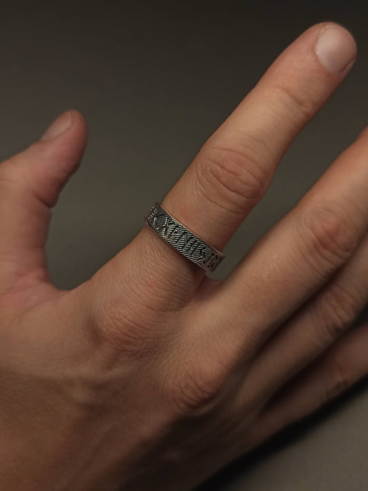 Gümüş Run Alfabesi Yüzük | Viking Sembollü Ayarlanabilir