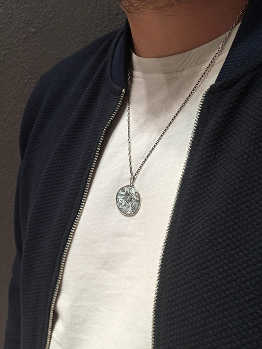 Çift Taraflı Ay ve Güneş Madalyon Kolye