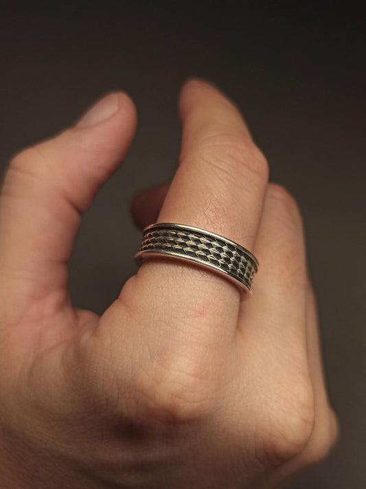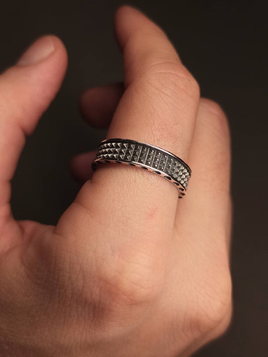 Piramit Motifli Gümüş Erkek Yüzüğü, Ayarlanabilir