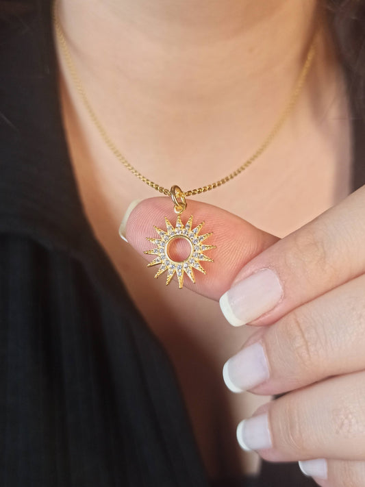 Güneş Motifli Taşlı Gümüş Kolye