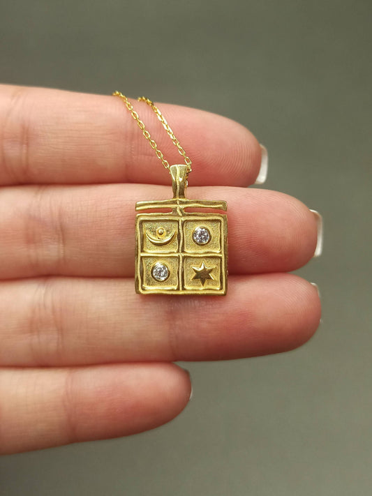 Ay ve Yıldız Sembollü Turkuaz Taşlı Gümüş Kolye
