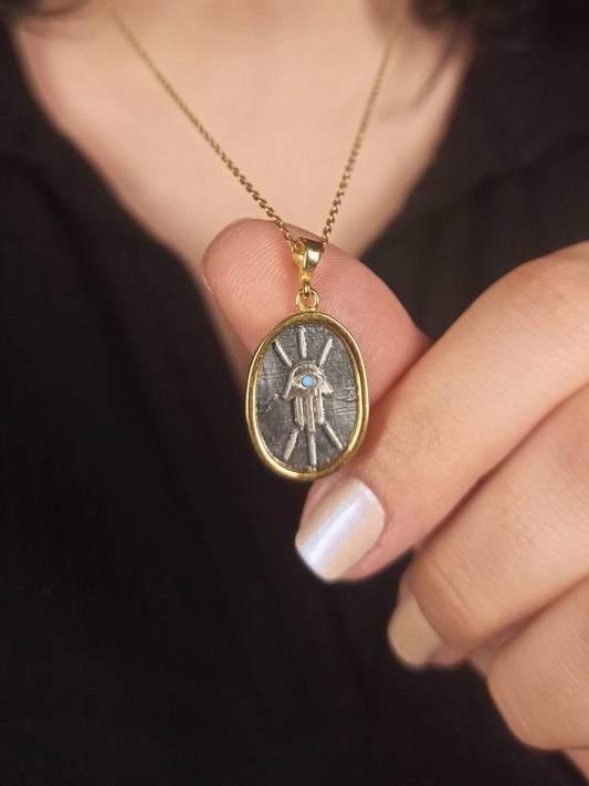 Fatma’nın Eli Göz Motifli Gümüş Kolye