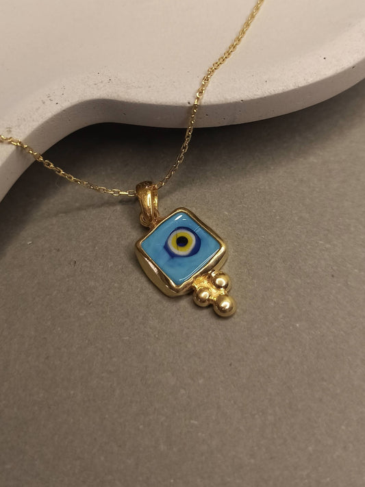 Sıvama Nazar Boncuğu Gümüş Kolye