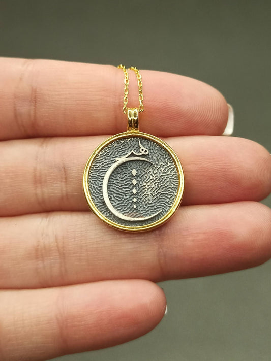 Çift Taraflı Ay ve Güneş Madalyon Kolye
