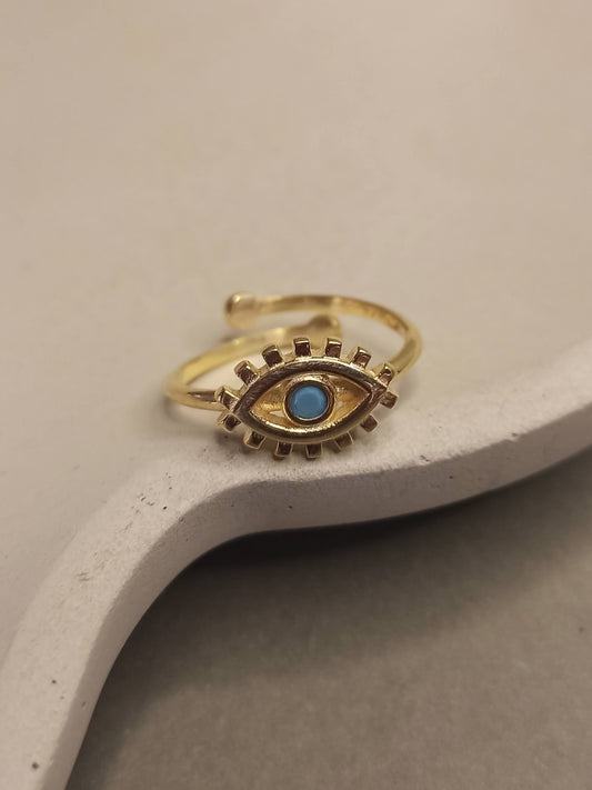 Minimalist Turkuaz Taşlı Göz Yüzük, Ayarlanabilir