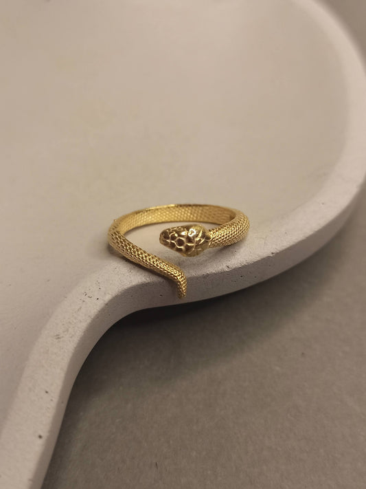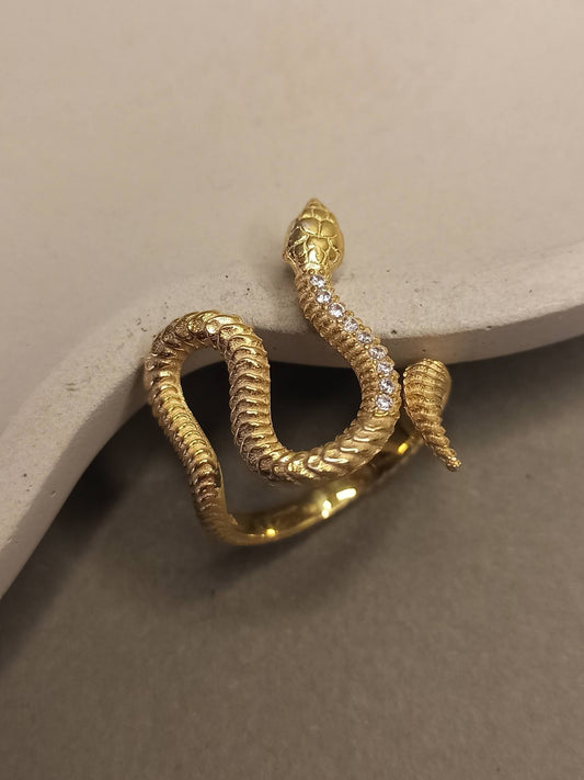Zirkon Taşlı S-Form Yılan Yüzük, Ayarlanabilir