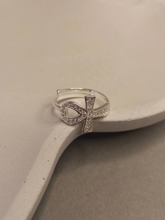 Zirkon Taşlı Gümüş Ankh Yüzük, Ayarlanabilir