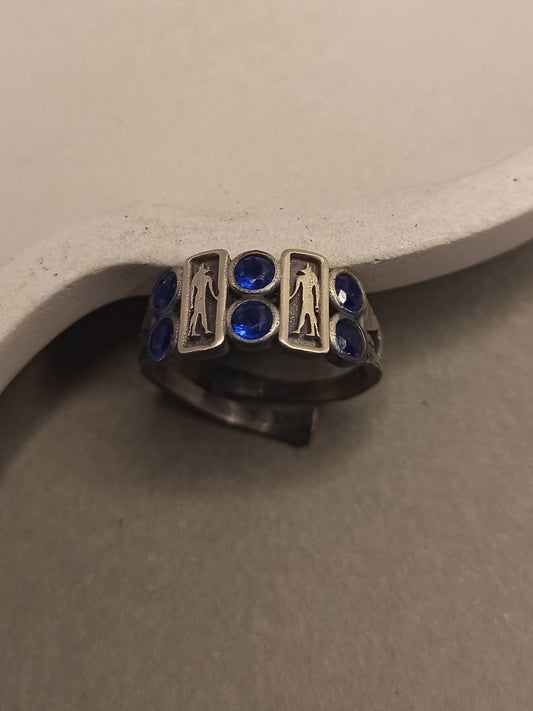 Anubis Figürlü Zirkon Taşlı Ayarlanabilir Yüzük - 925 Gümüş