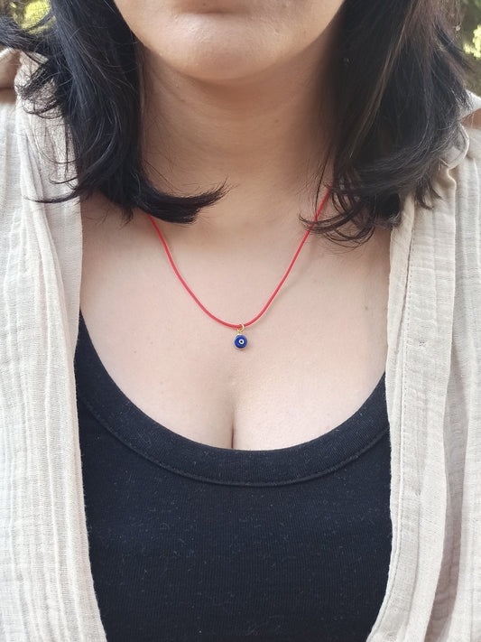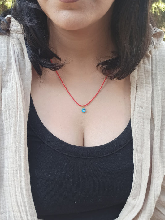 Nazar Boncuklu Kırmızı İp Kolye, 925 Gümüş Altın Kaplama