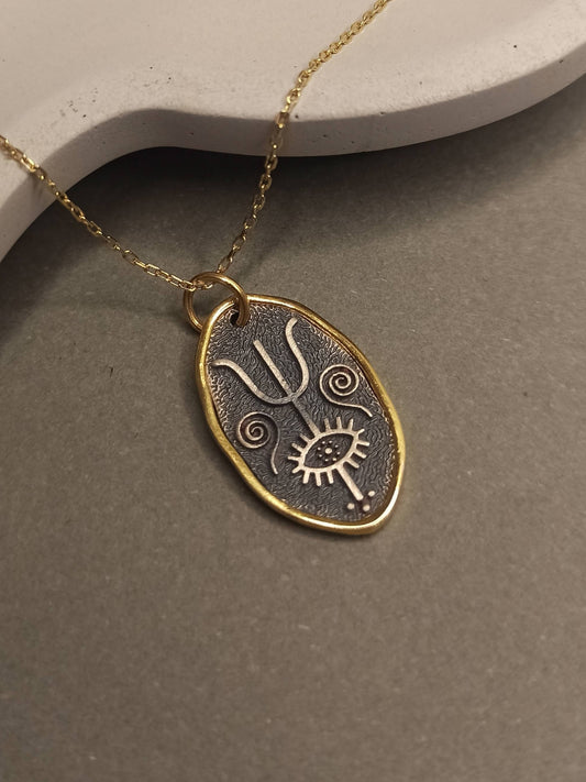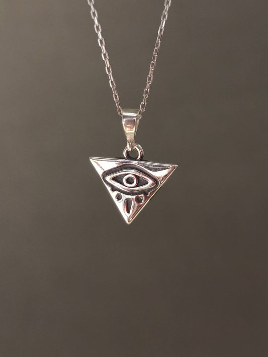 Gümüş Trident ve Kirpikli Göz Kolye