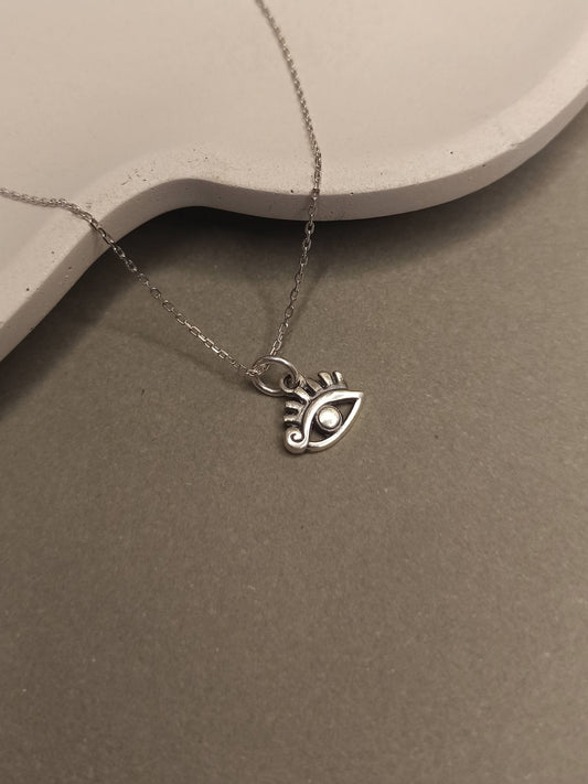 Minimalist Gümüş Kirpikli Göz Kolye