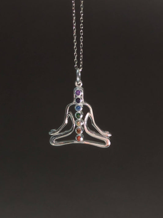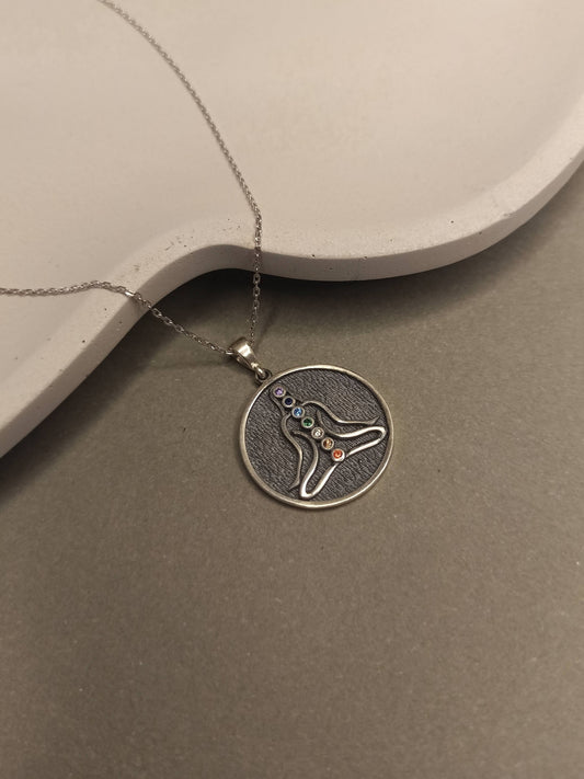 7 Çakra Taşlı Yogi Kolye , Gümüş