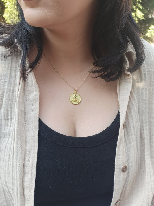 7 Çakra Taşlı Yogi Kolye , Altın Kaplamalı Gümüş