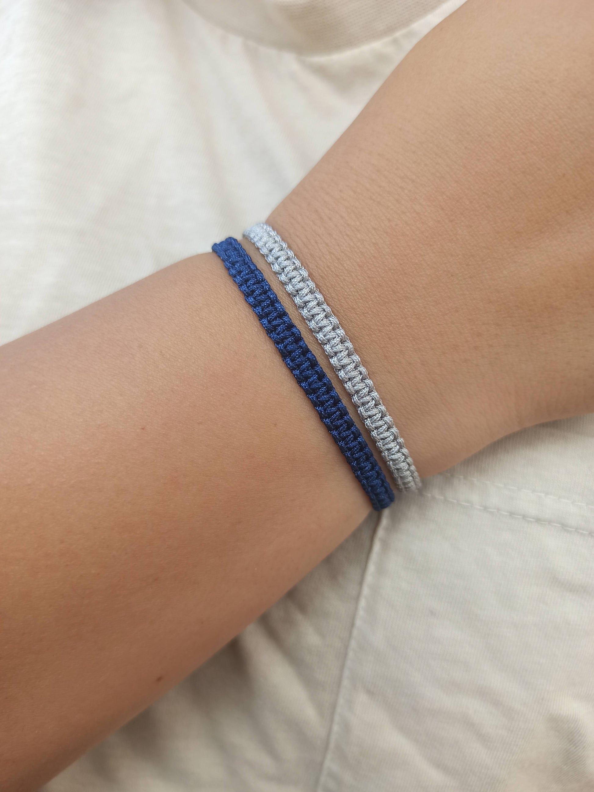 2'li makrome ipli bileklik seti , lacivert ve açık gri
