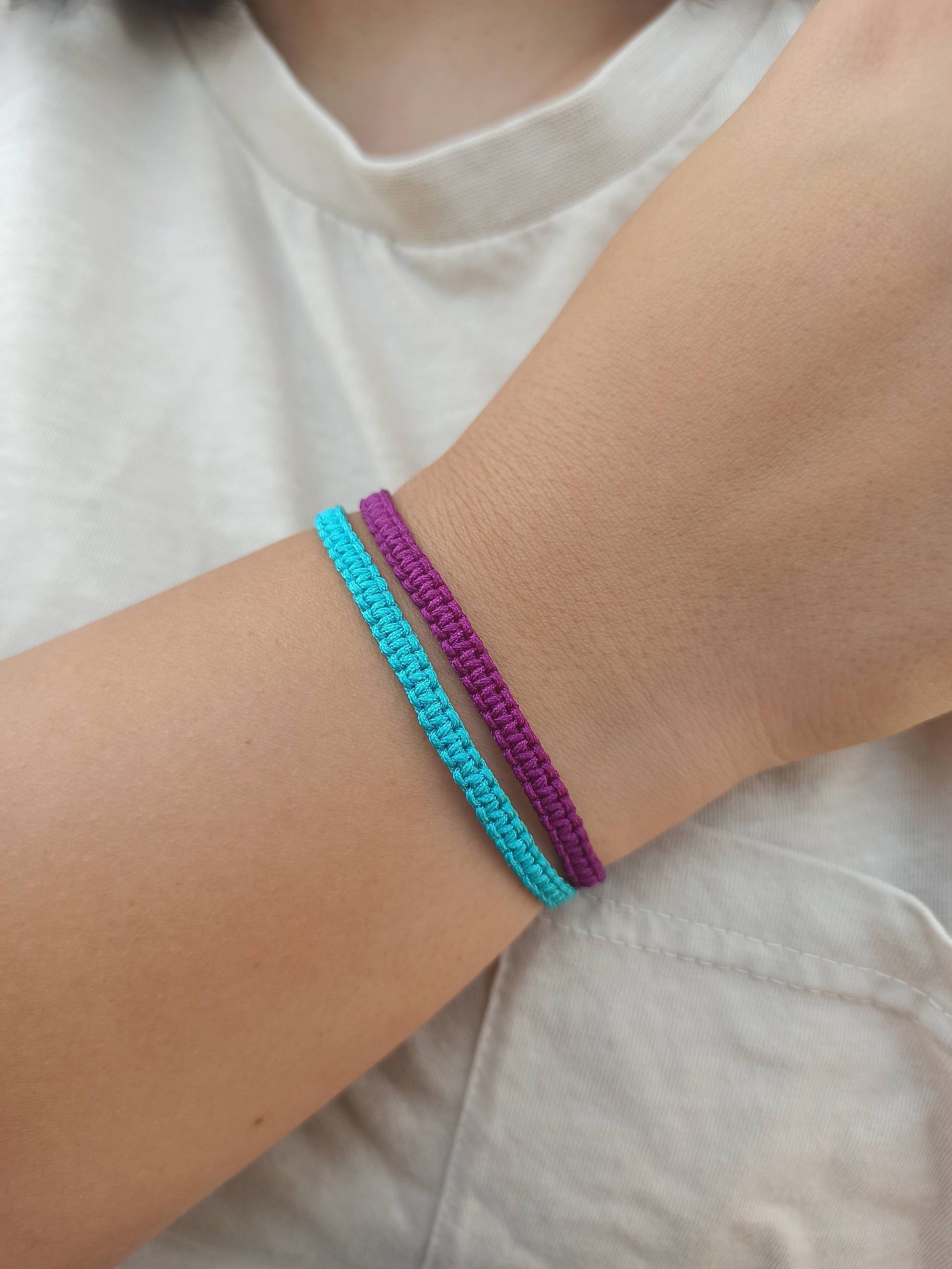 2'li makrome ipli bileklik seti , turkuaz ve mor