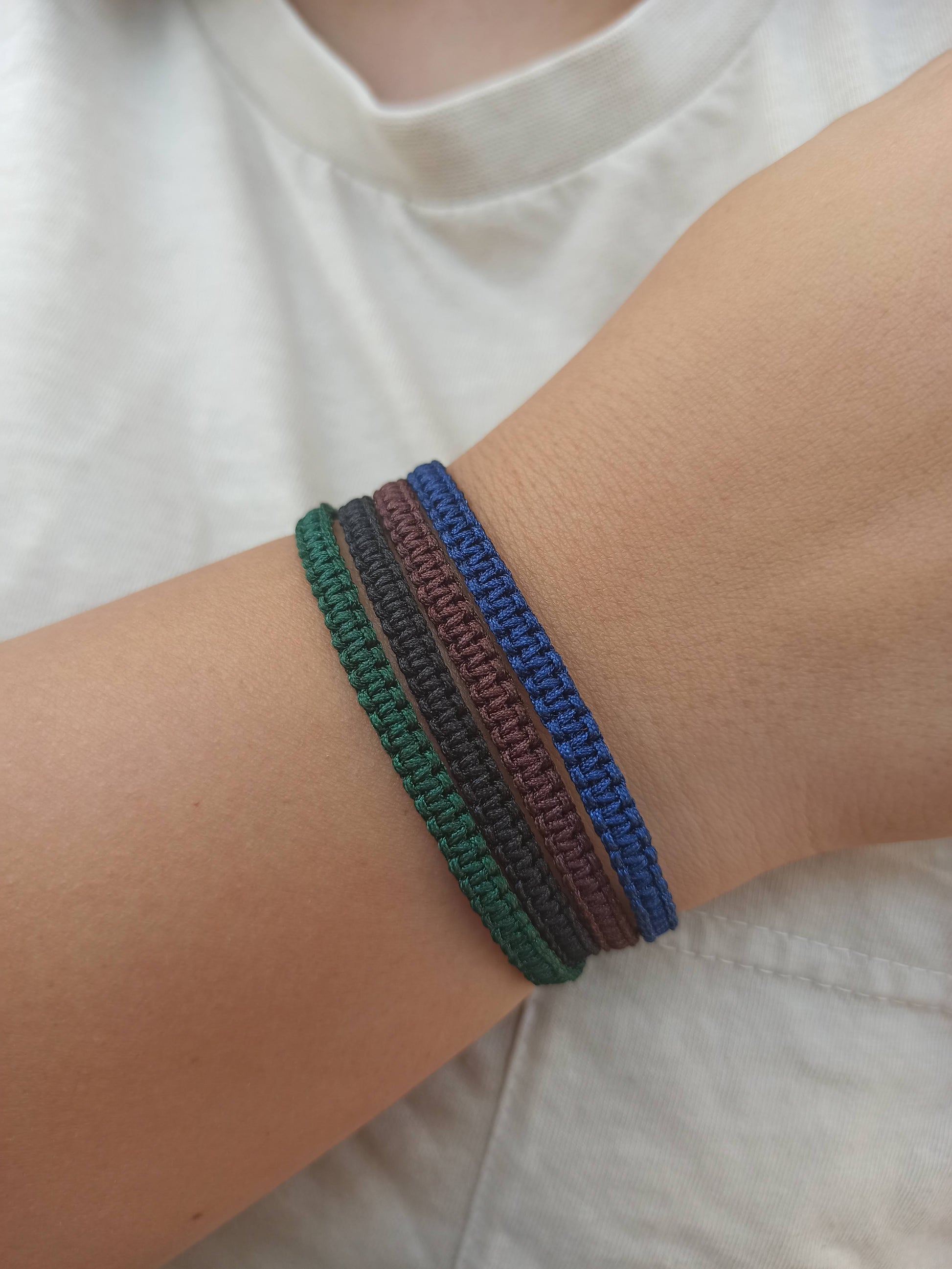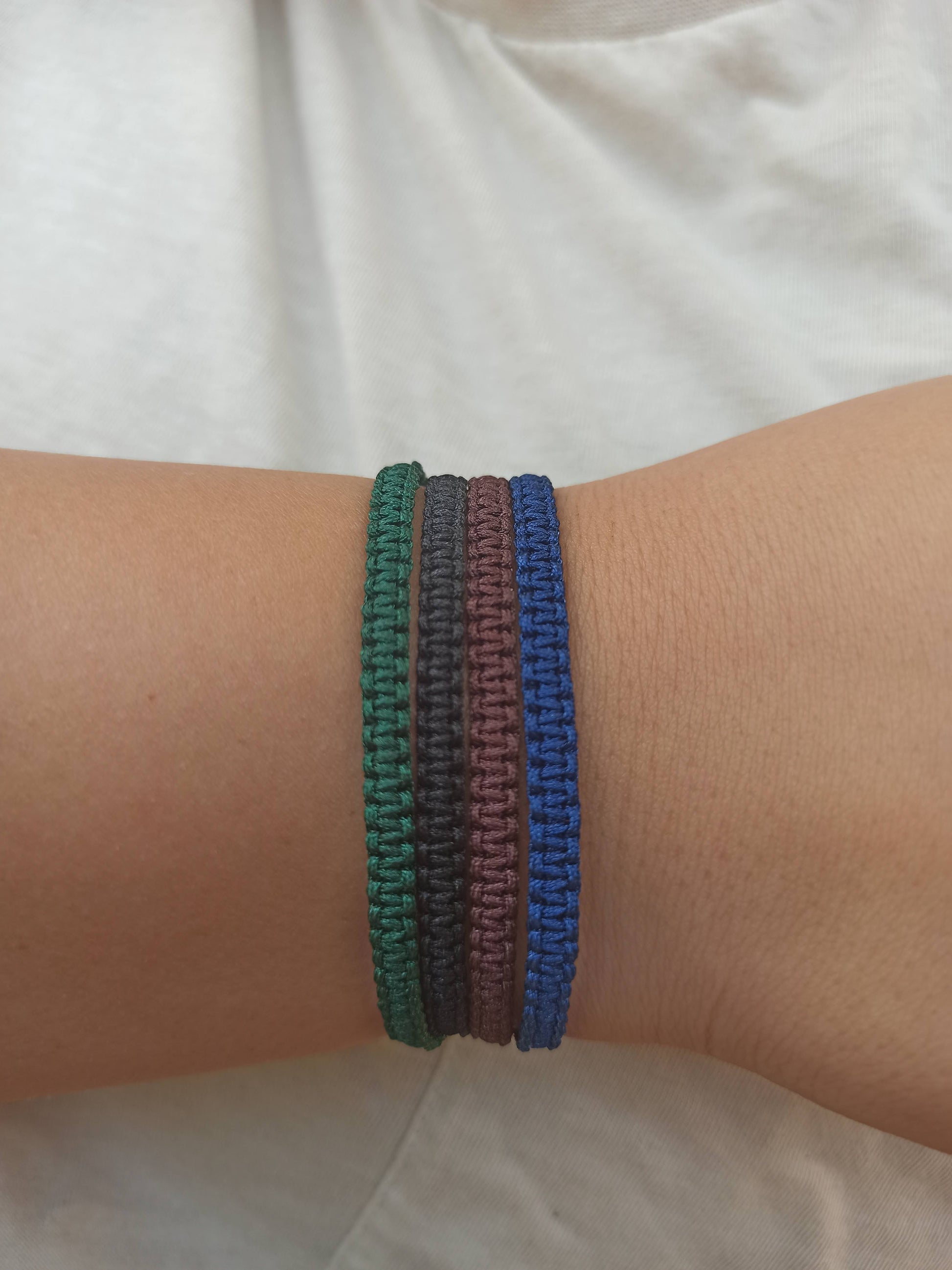 1 adet lacivert , 1 adet koyu yeşil, 1 adet kahverengi , 1 adet siyah bileklik.