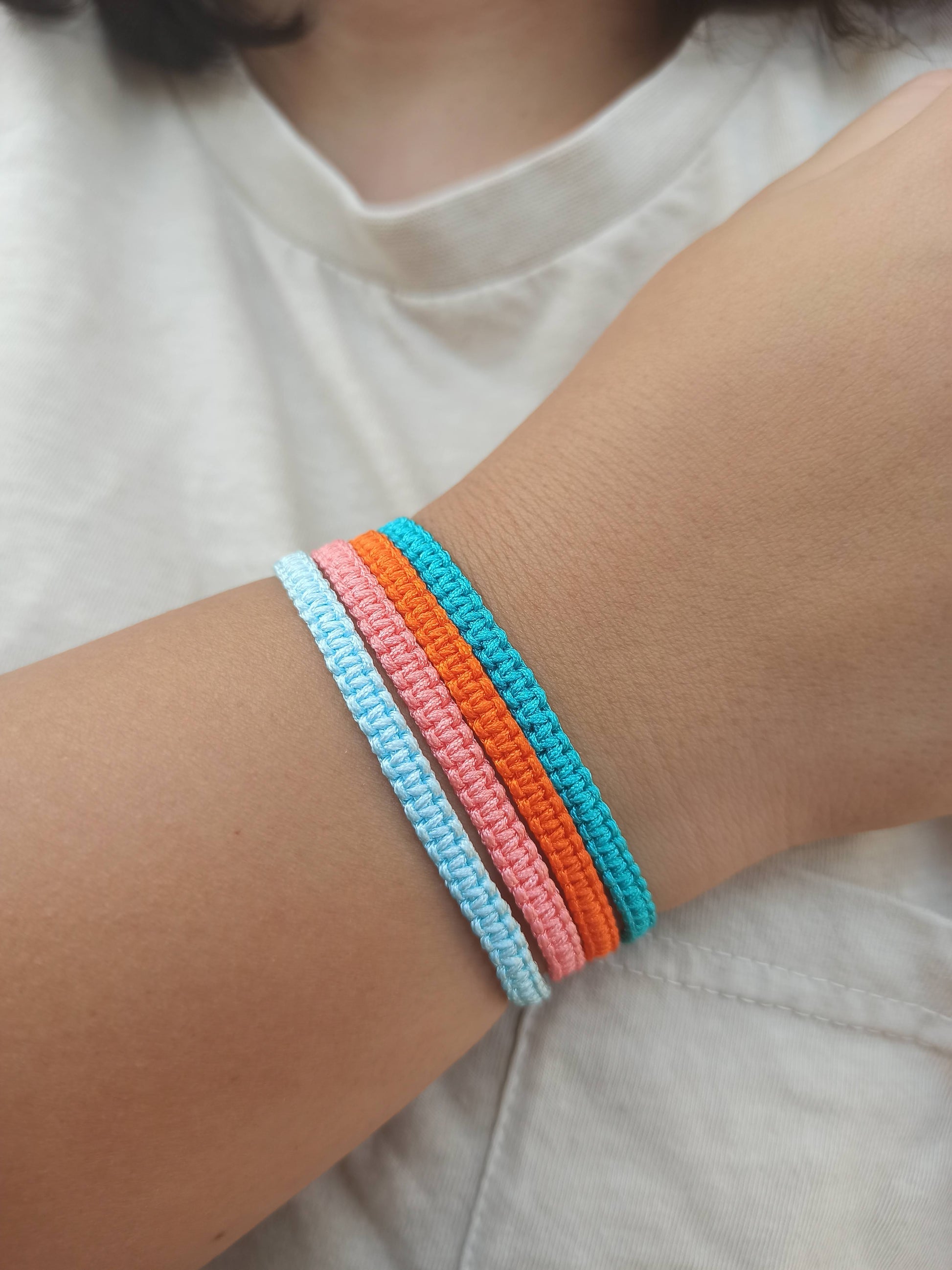 1 adet bebe mavisi ipli , 1 adet açık pembe ipli, 1 adet turuncu ipli , 1 adet turkuaz ipli makrome bileklik.