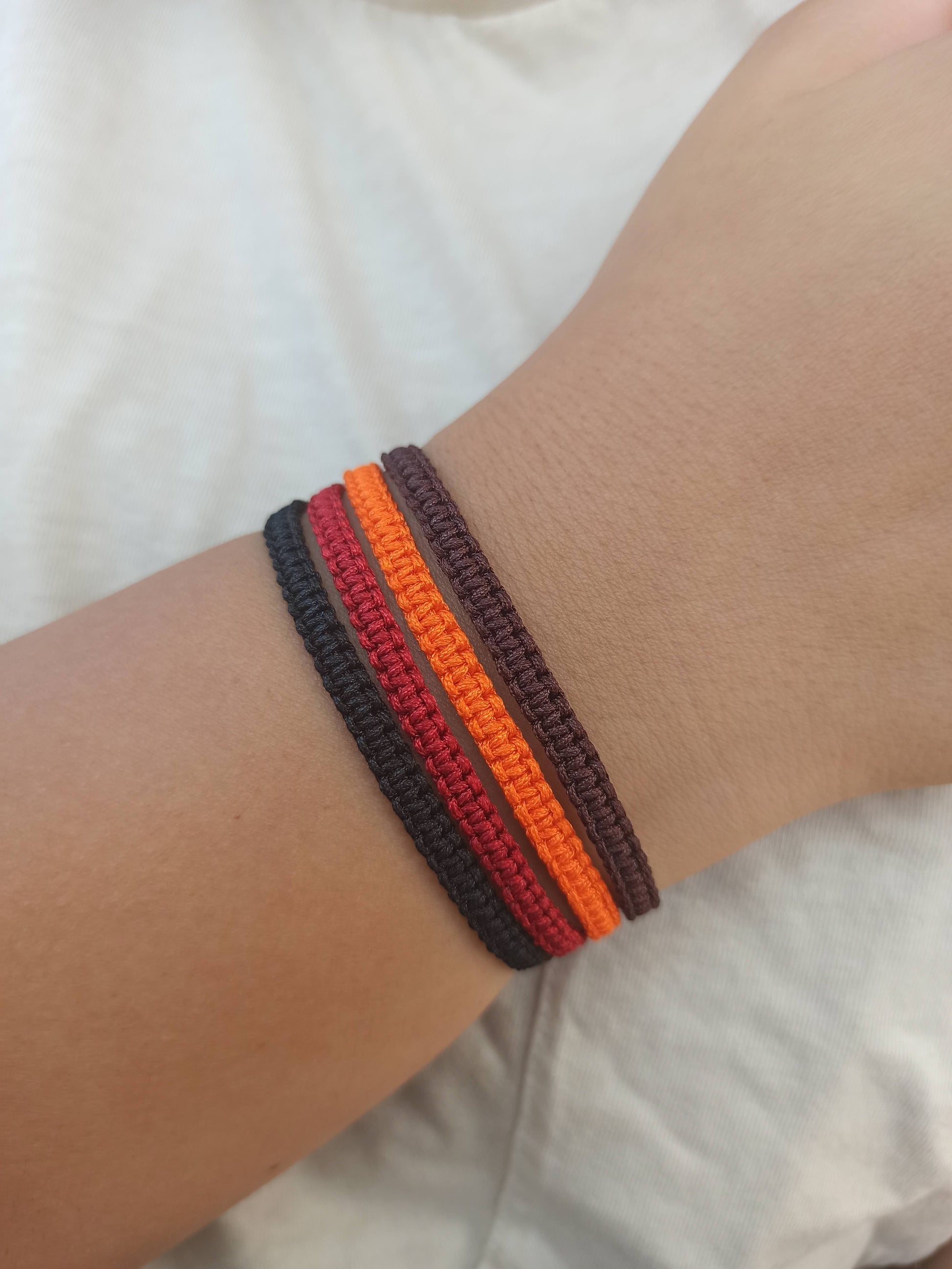1 adet siyah ipli , 1 adet kırmızı ipli, 1 adet turuncu ipli , 1 adet kahverengi ipli makrome bileklik.