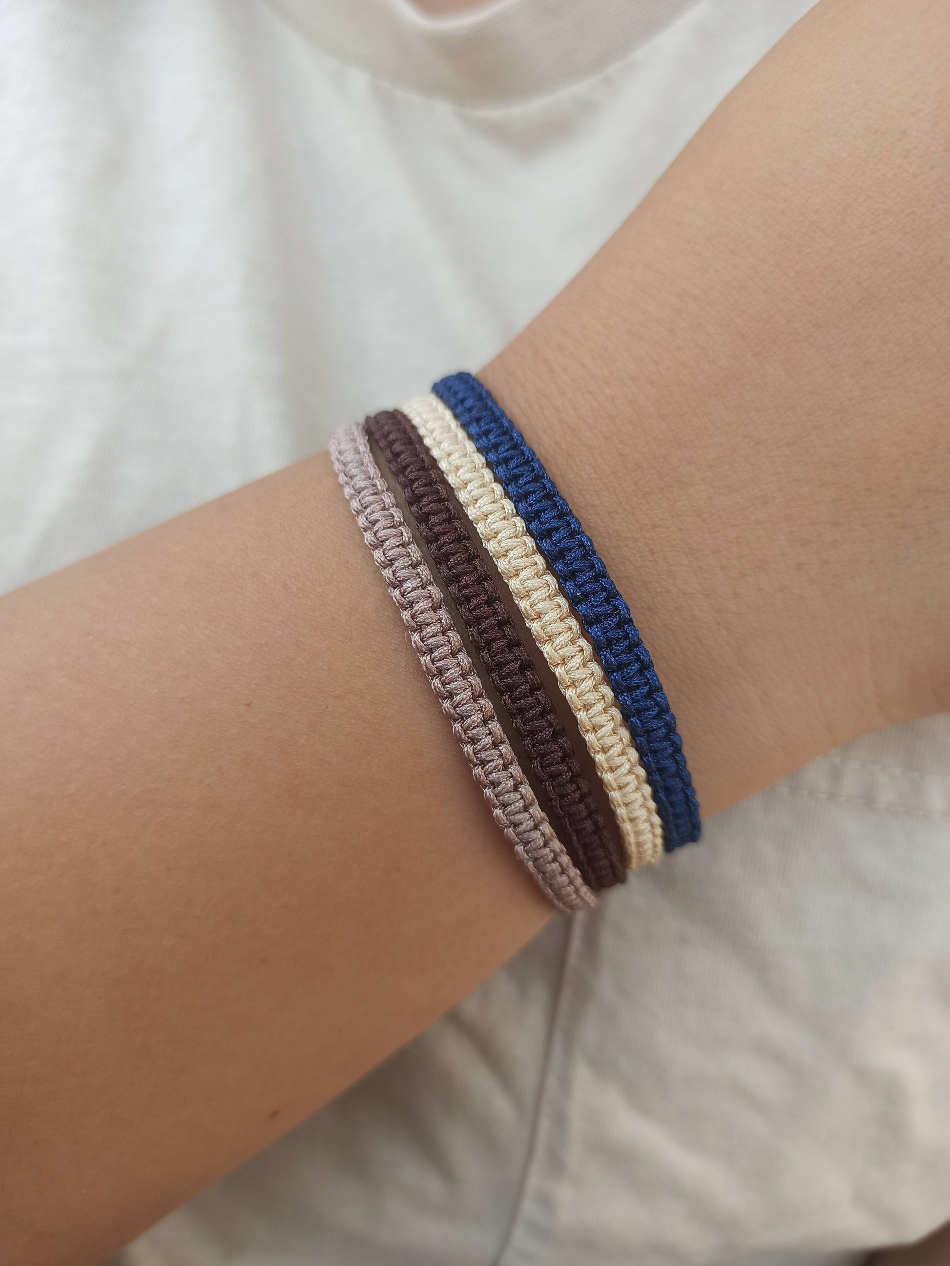1 adet vizon ipli , 1 adet açık kahverengi ipli, 1 adet bej ipli , 1 adet lacivert ipli makrome bileklik.