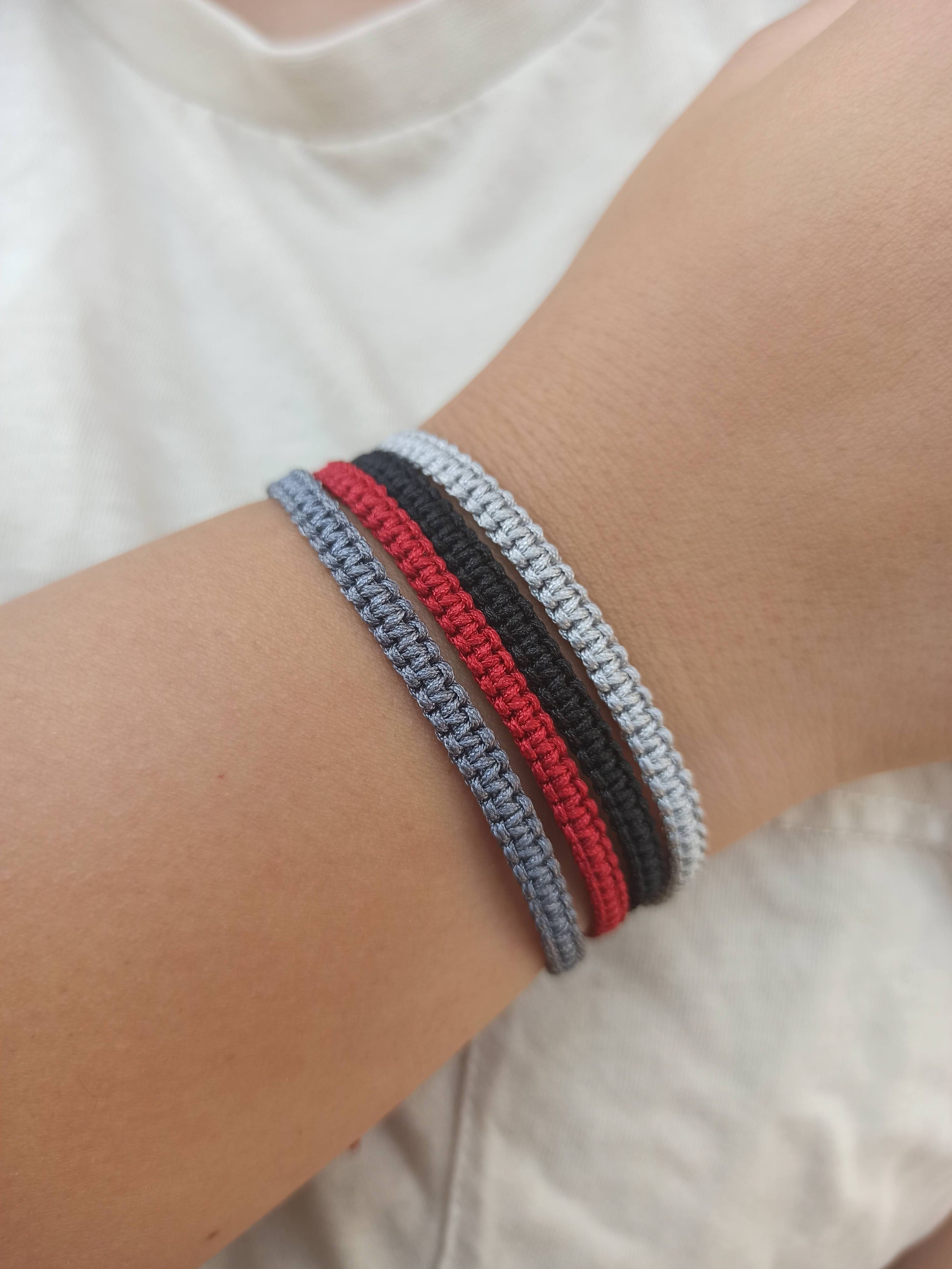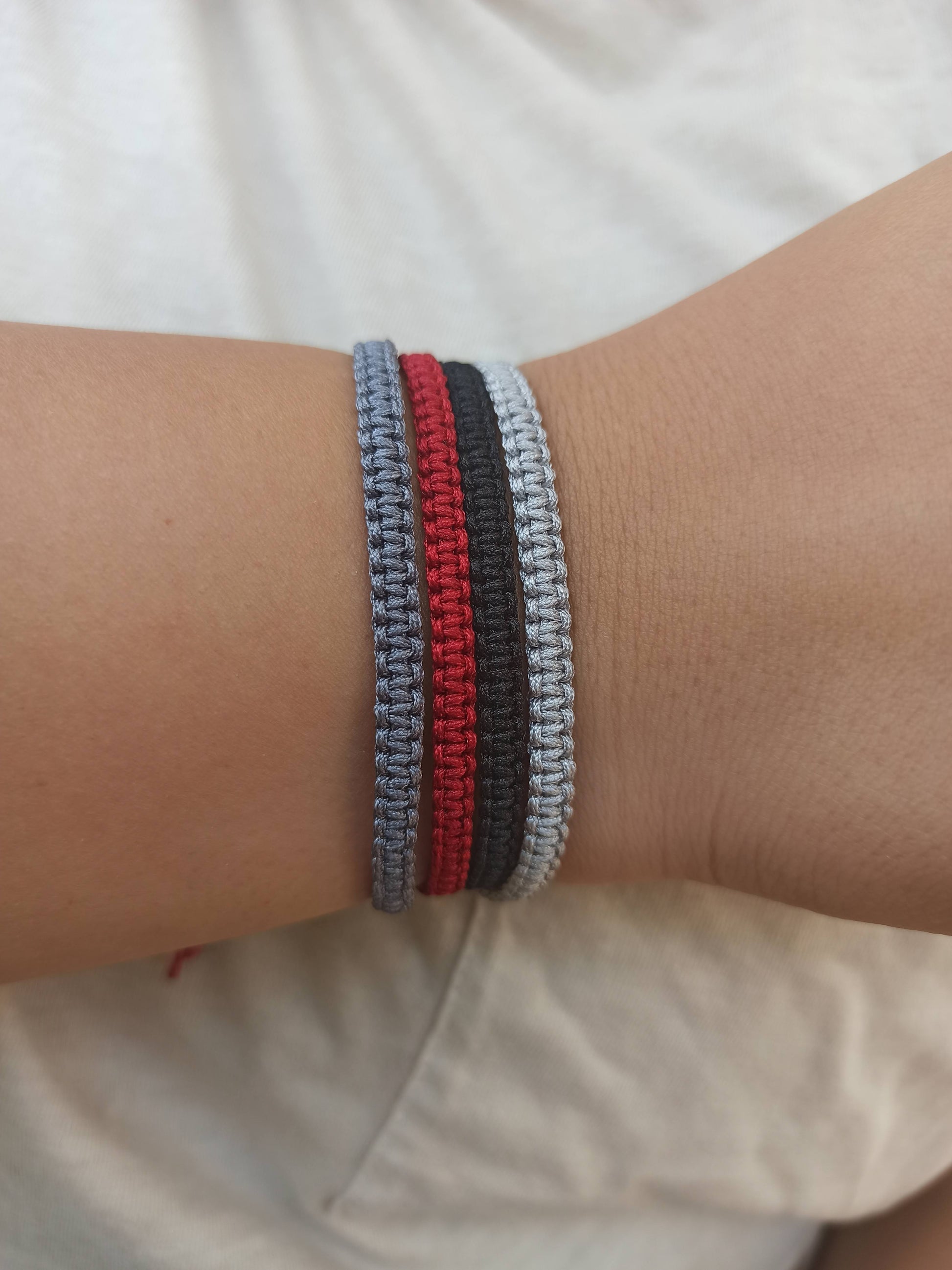 1 adet koyu gri ipli , 1 adet bordo ipli, 1 adet siyah ipli , 1 adet açık gri ipli makrome bileklik.
