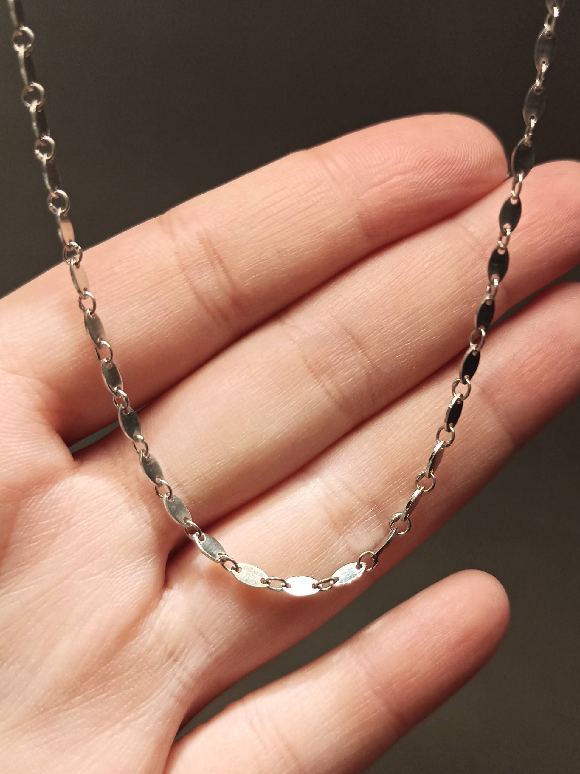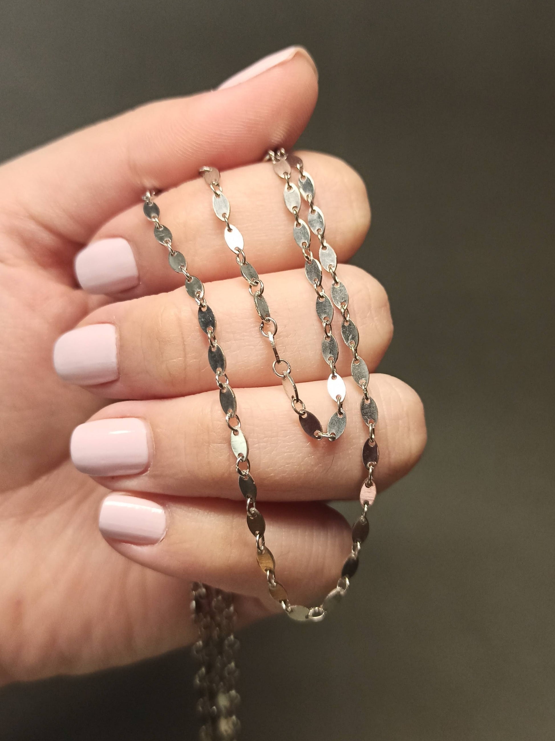 90 cm Gümüş Oval Pullu Zincir Kolye