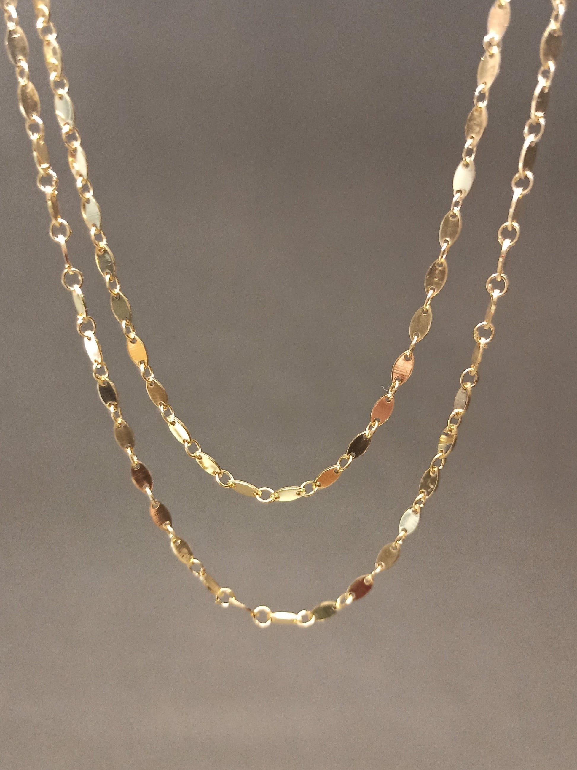 Gündüzden Geceye Mükemmel Parıltı. Şu anın en popüler aksesuar trendlerinden biri olan pullu zincir kolyelerle tanışın. Zarif ve küçük disk detayları, her hareketinizde ışığı yakalayarak size dinamik bir ışıltı katar. 90 cm uzunluğu sayesinde bu kolyeyi tek bir uzun parça olarak ya da fotoğraftaki gibi çift sıra (layering) yaparak farklı stillerde kullanabilirsiniz. Minimalist giysilere dahi anında şıklık katmanın en kolay yolu!