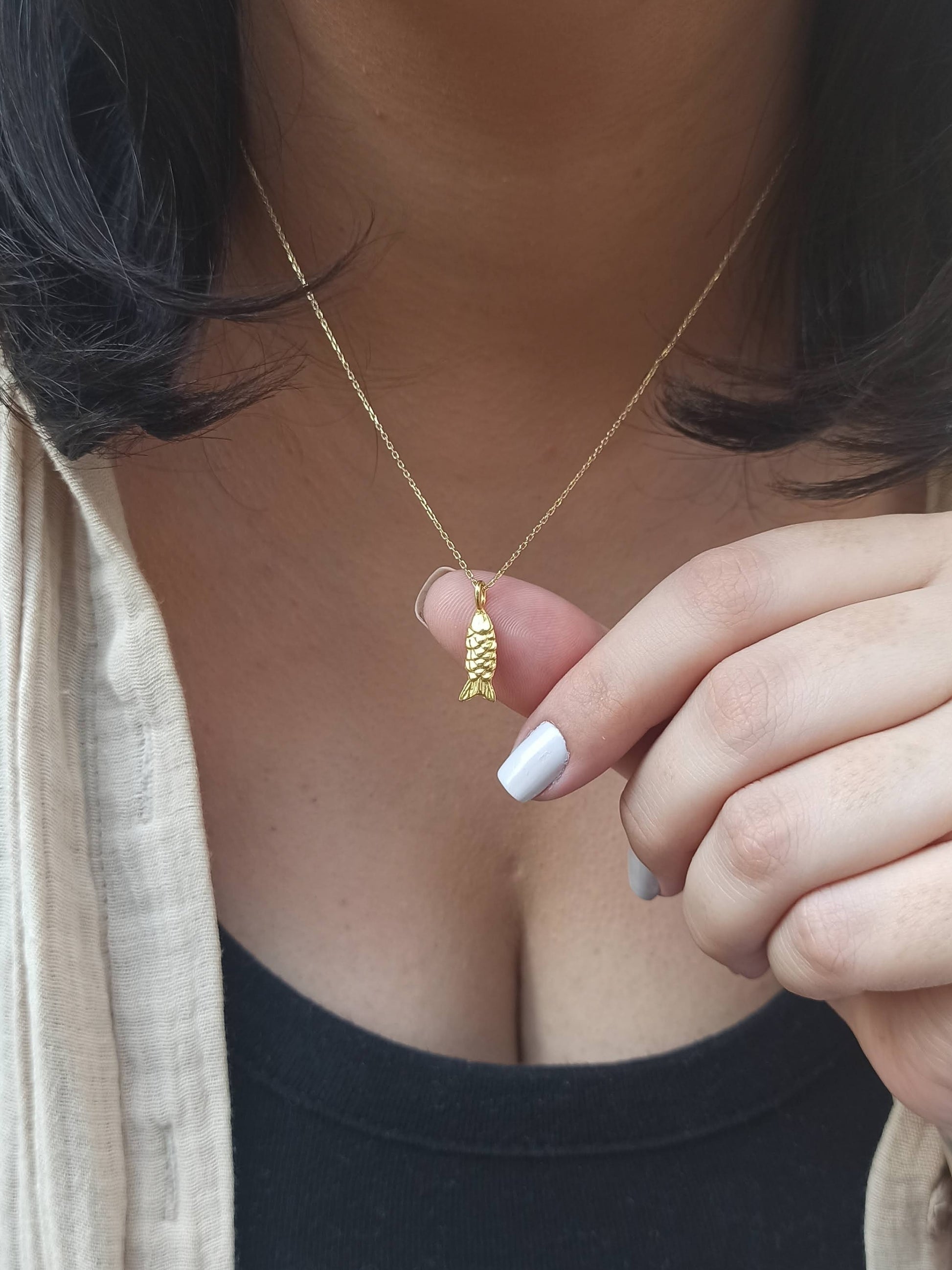 Altın Mini Balık Kolye - Gümüş Bereket Kolyesi