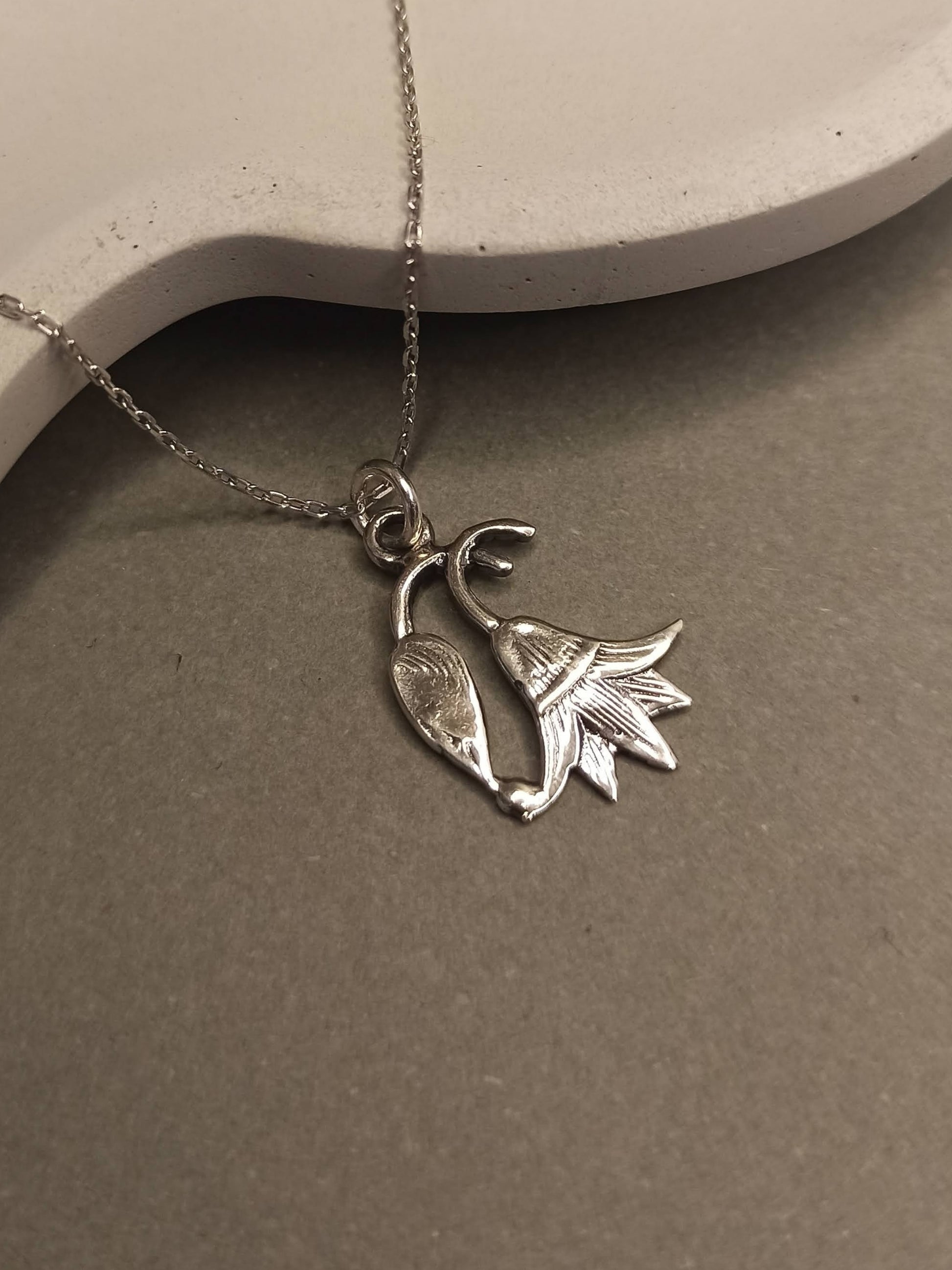 Gümüş Antik Mısır Ters Lale Kolye