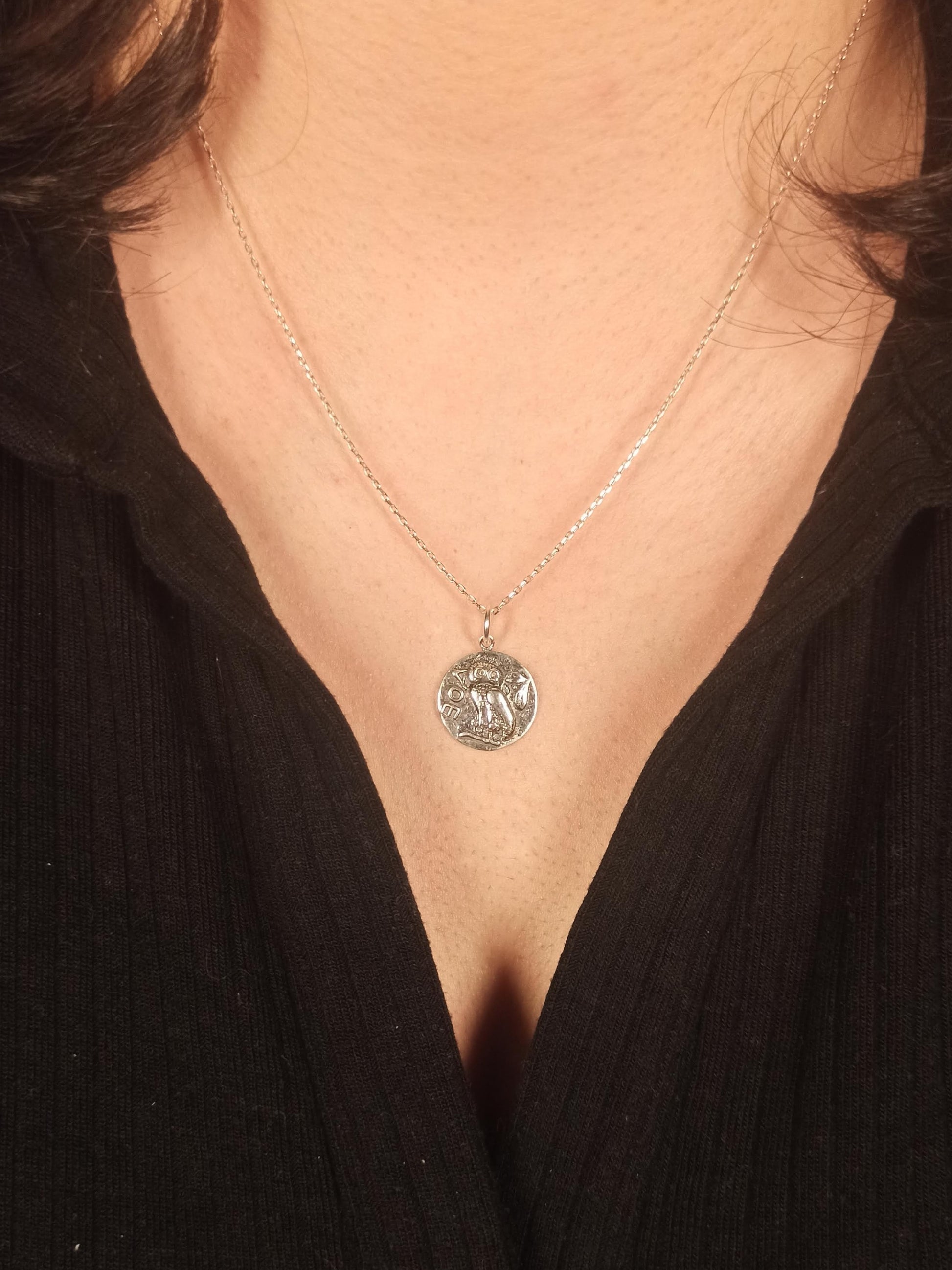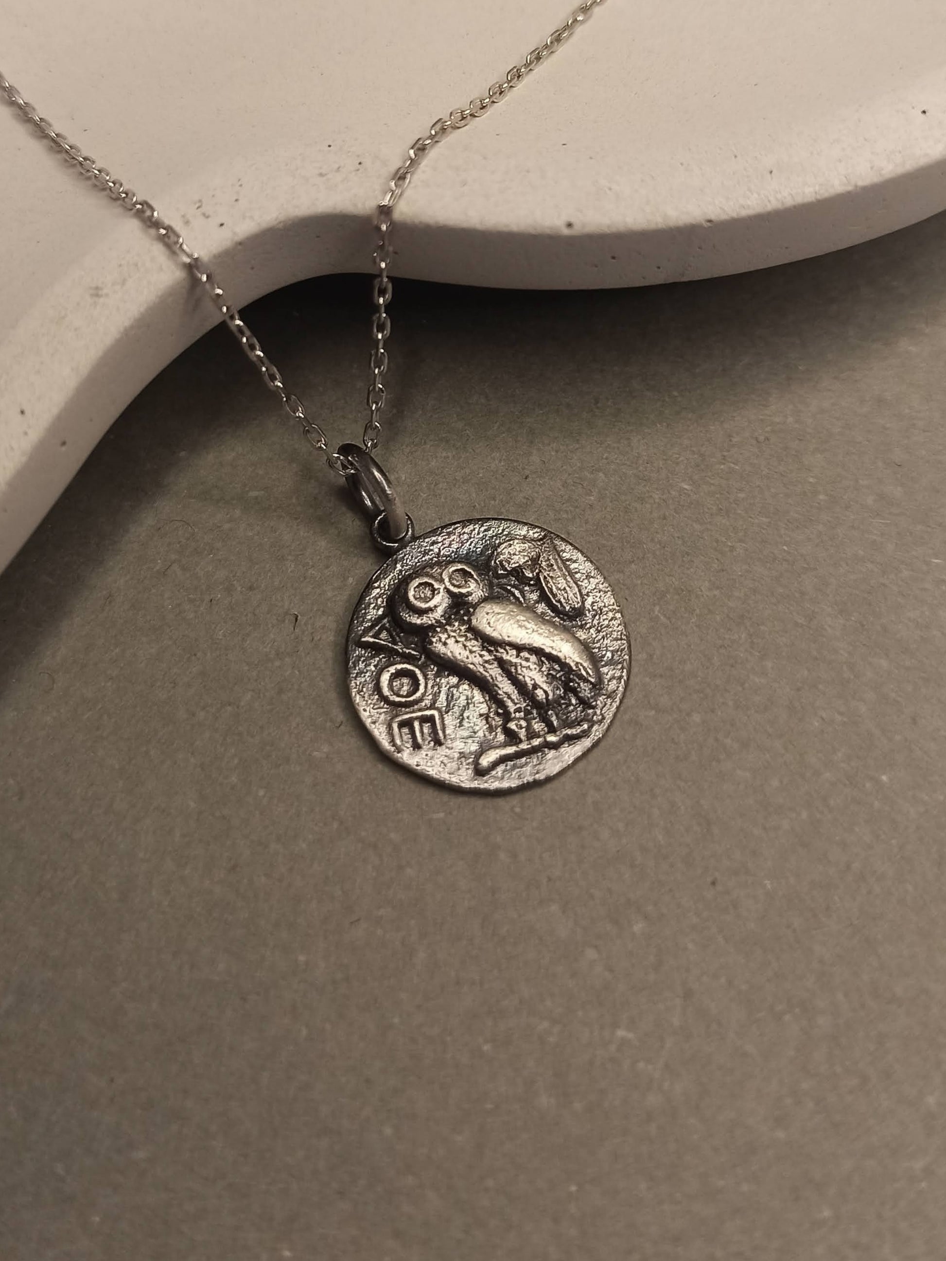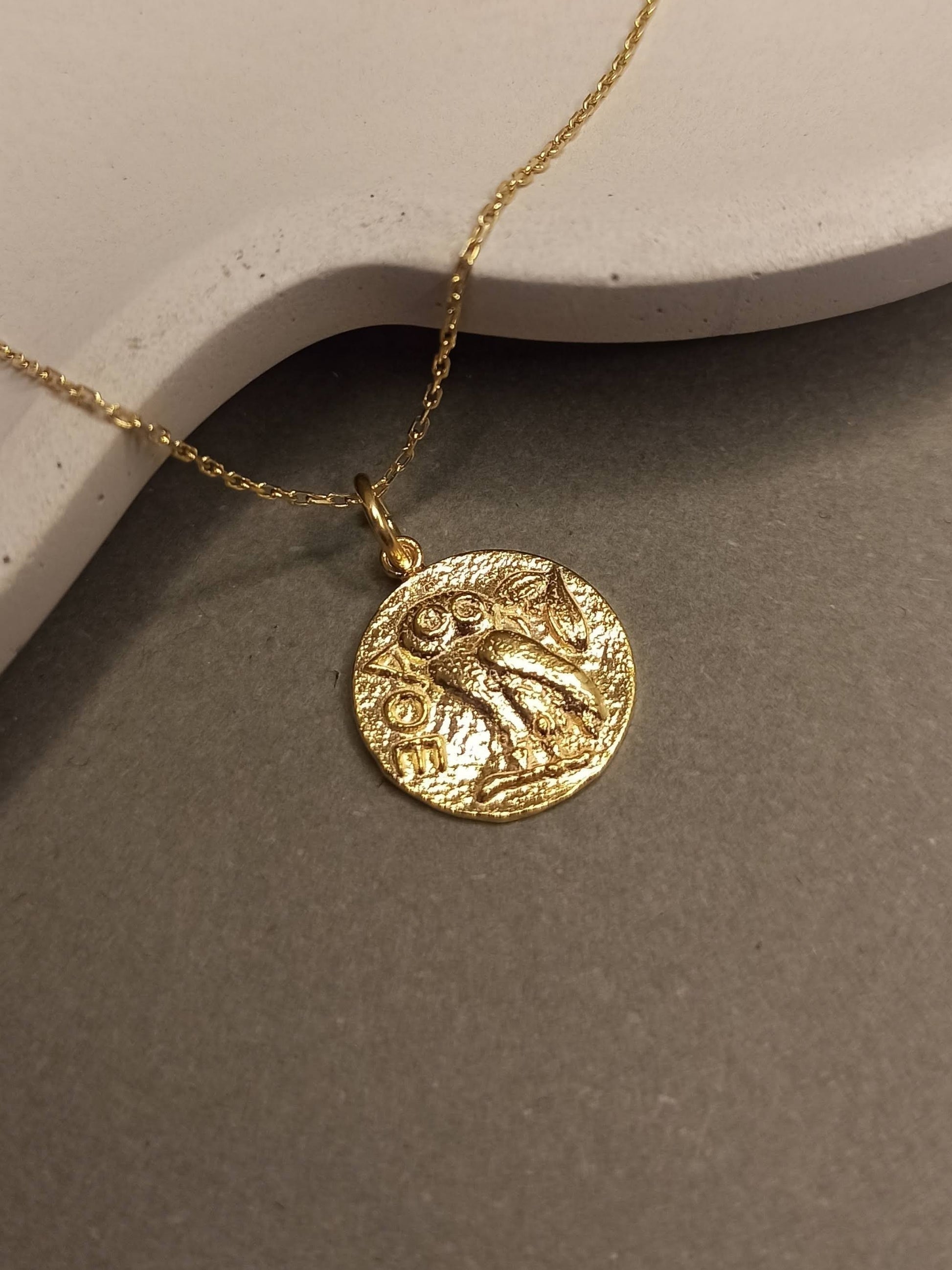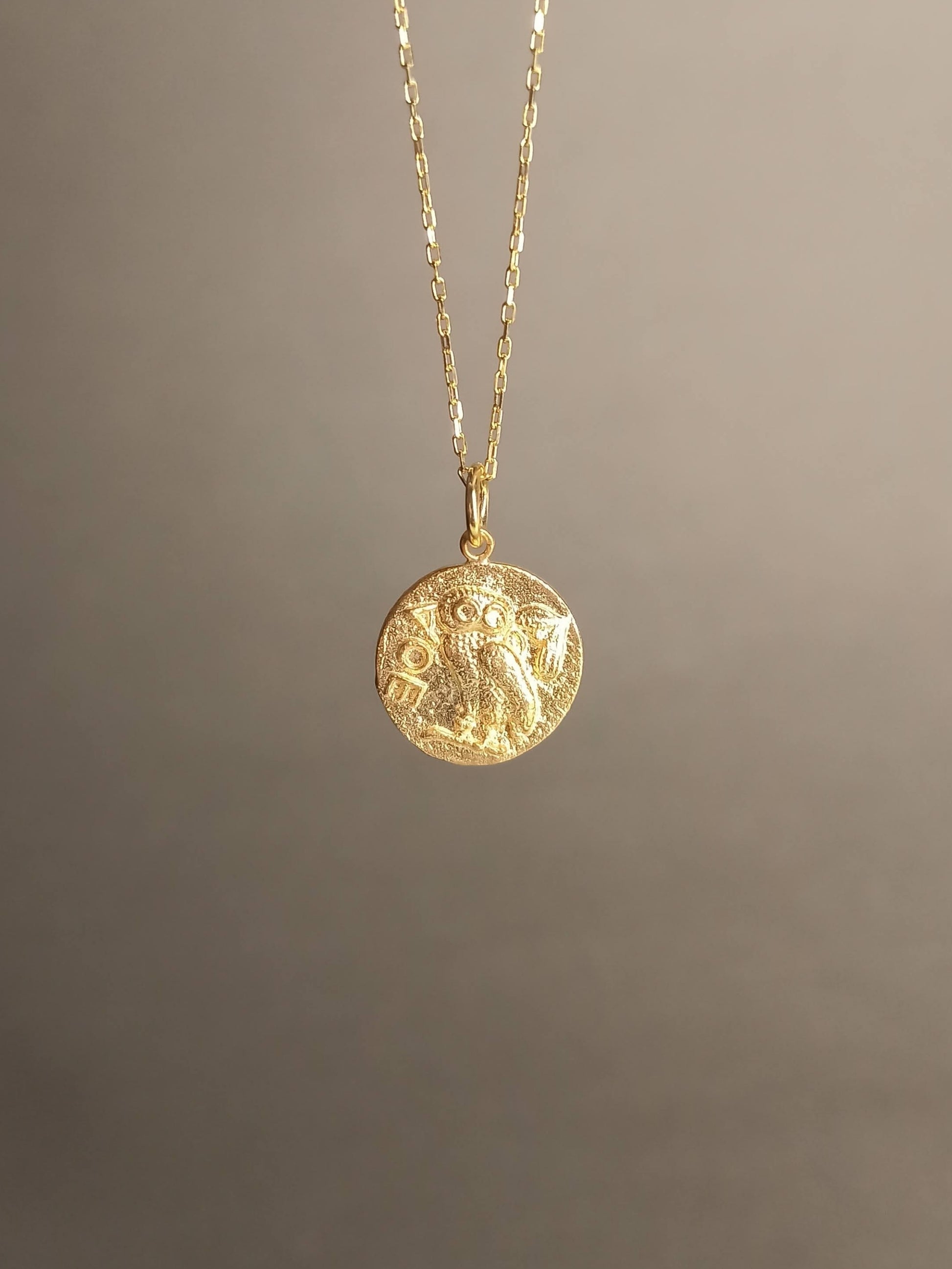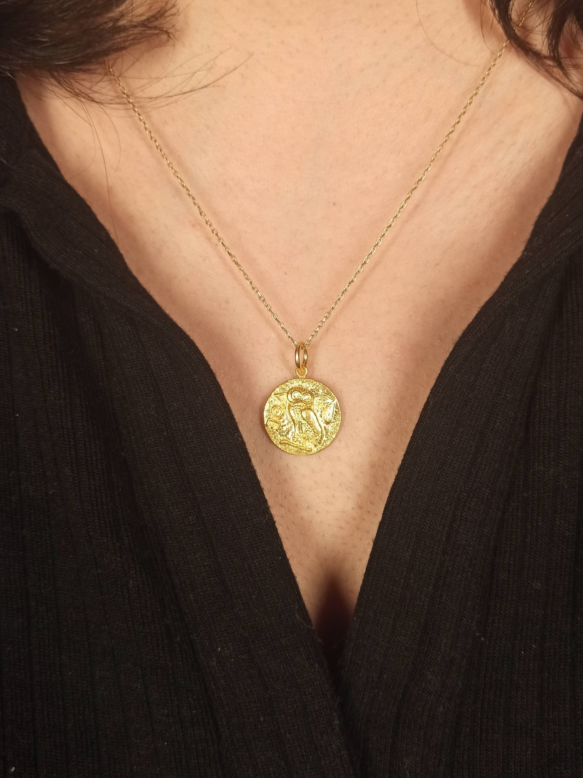 Athena’nın Baykuşu Madalyon Kolye, bilgelik, koruma ve sezgisel güçlerin sembolüdür.