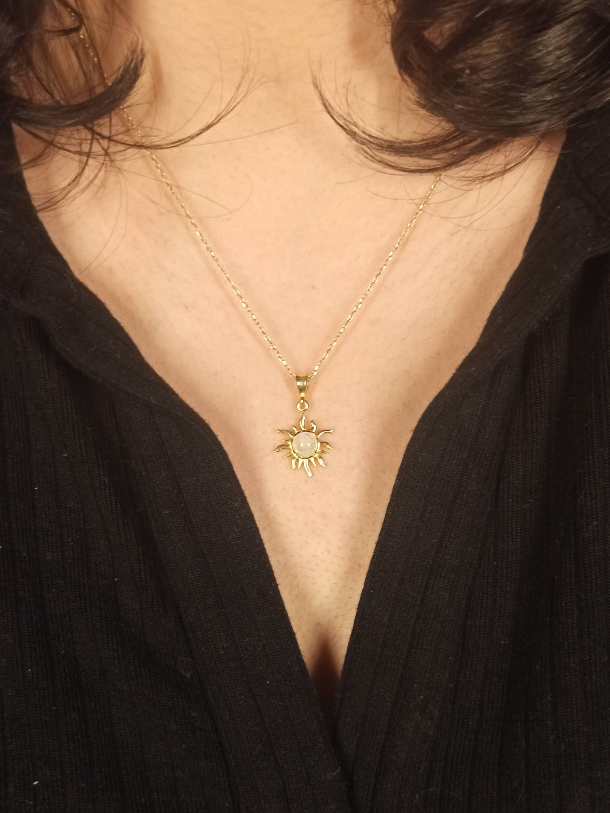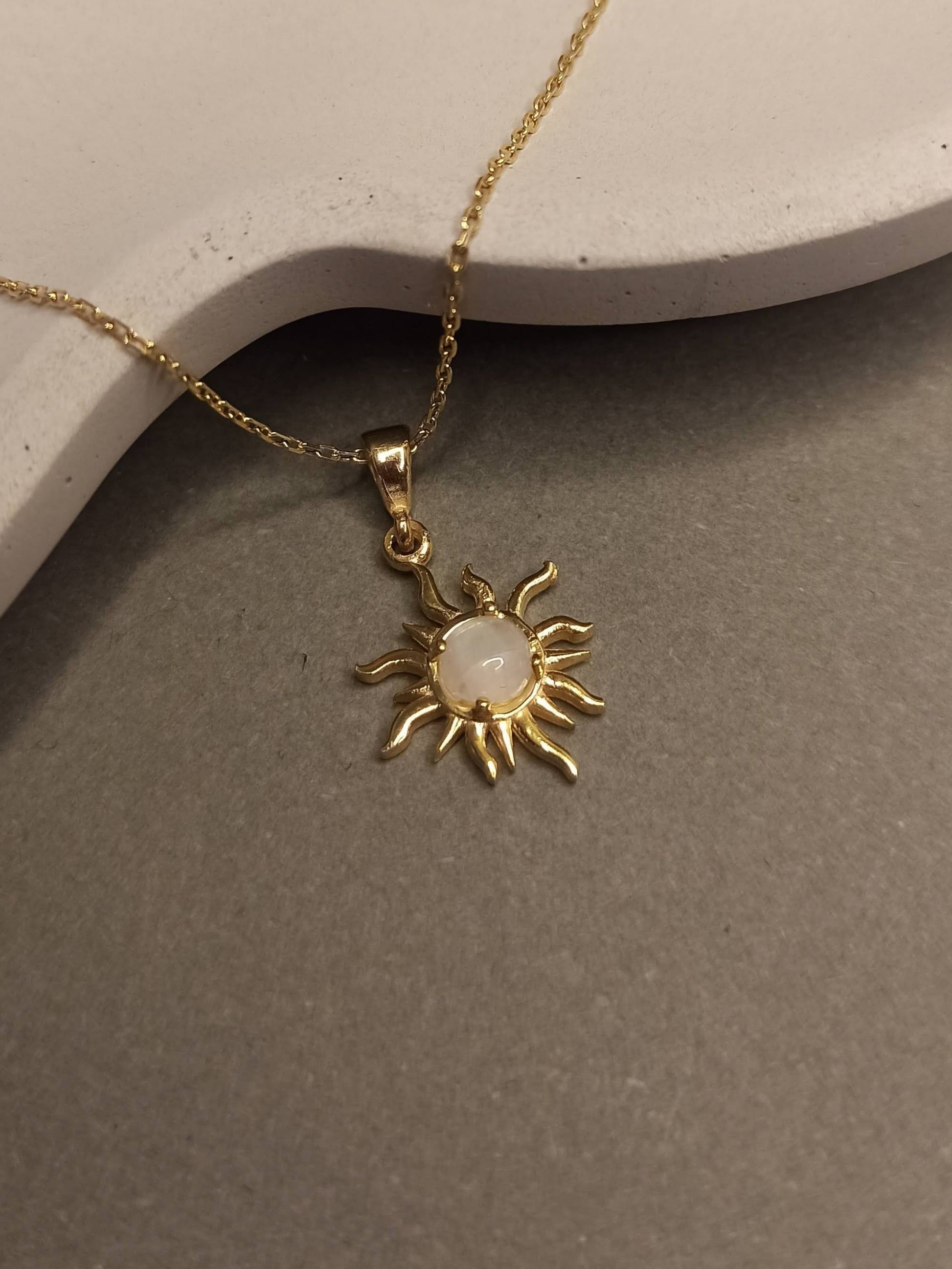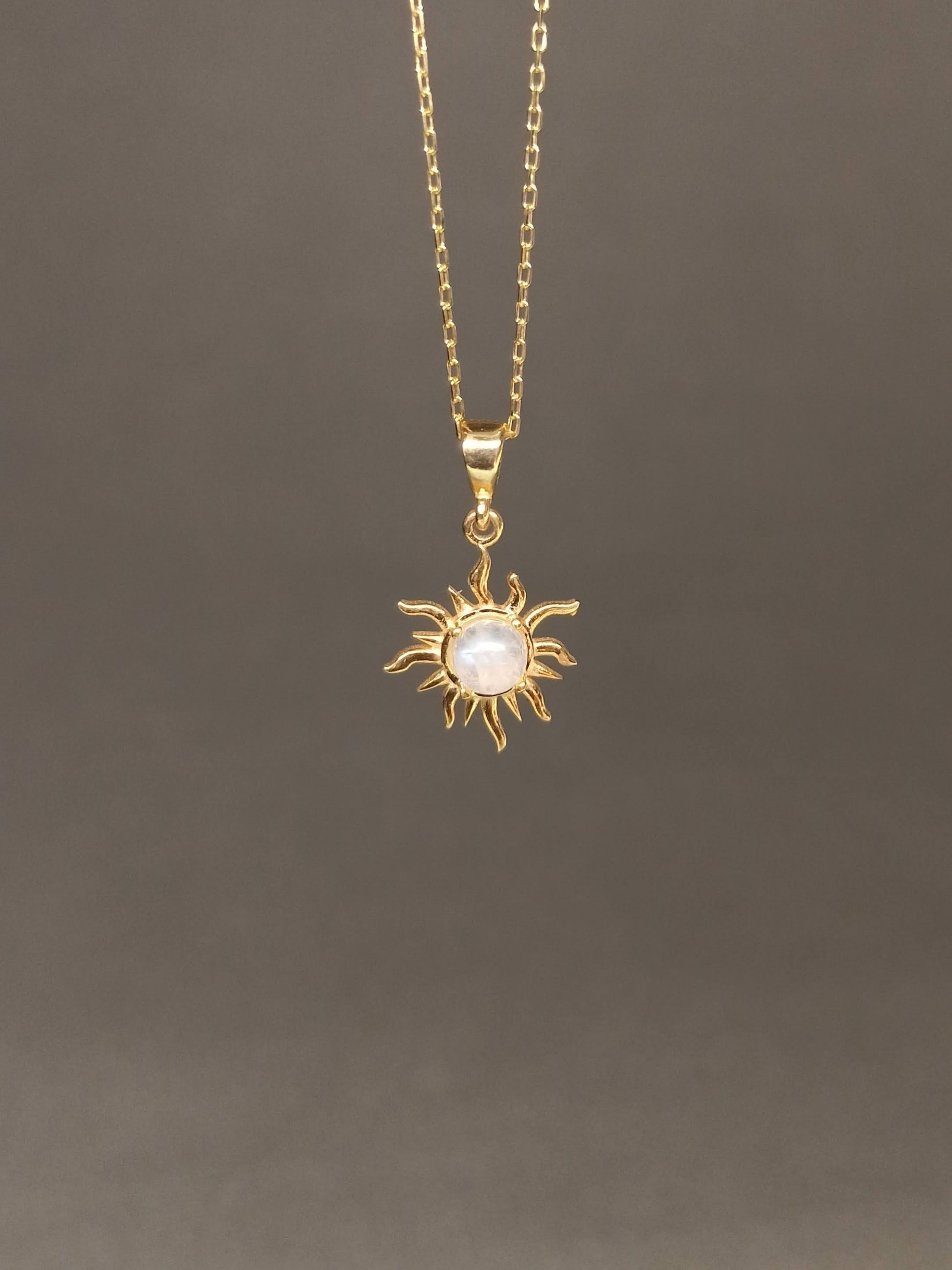 Gümüş Ay Taşlı Mini Güneş Kolye