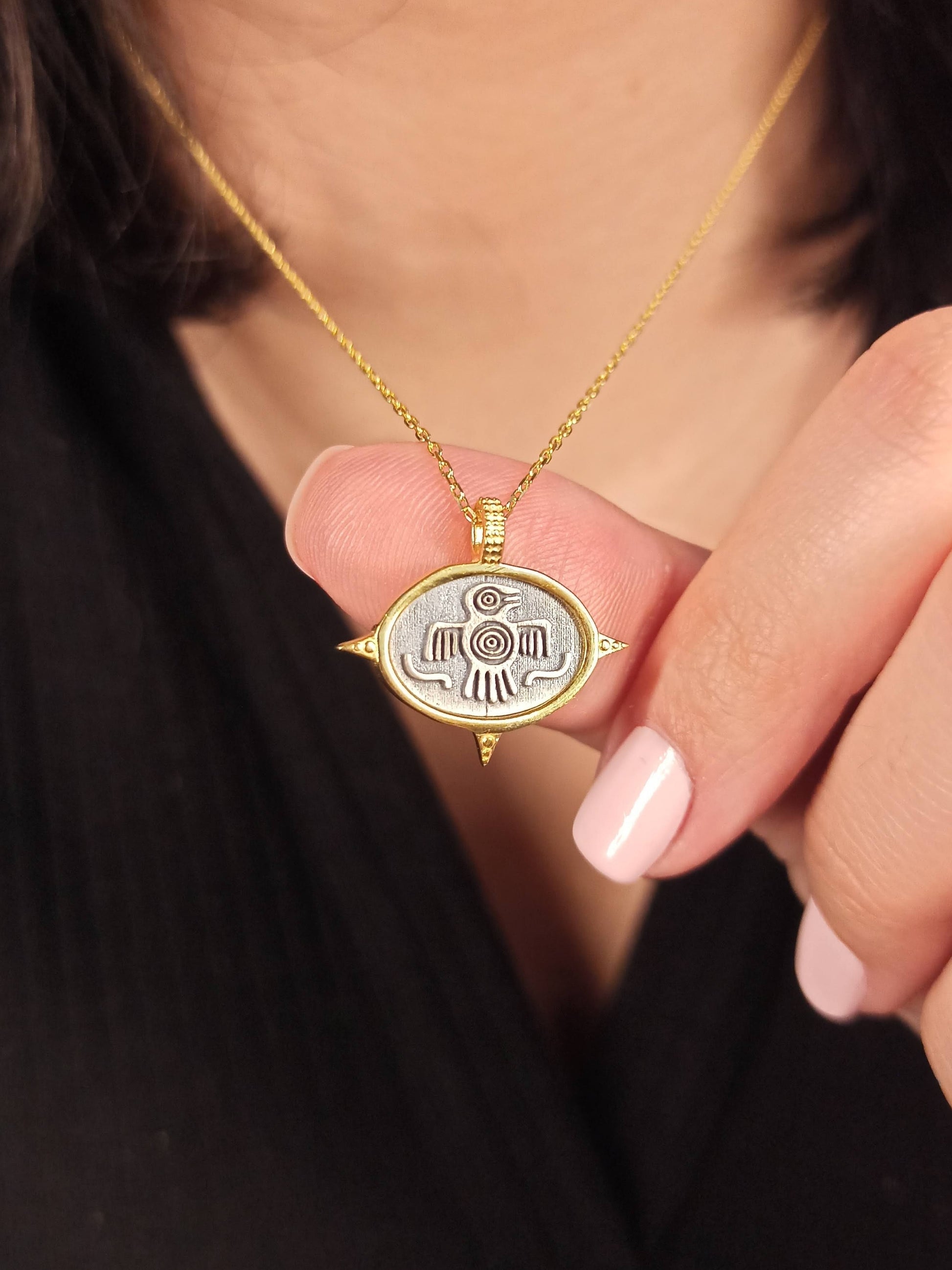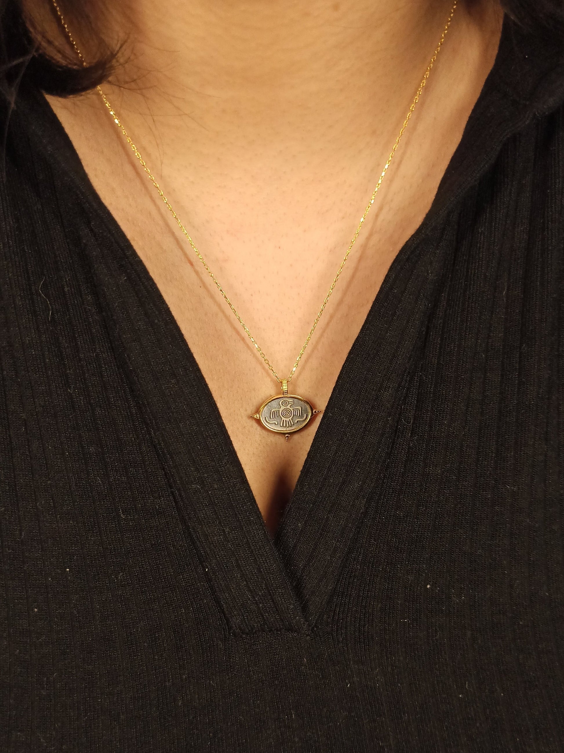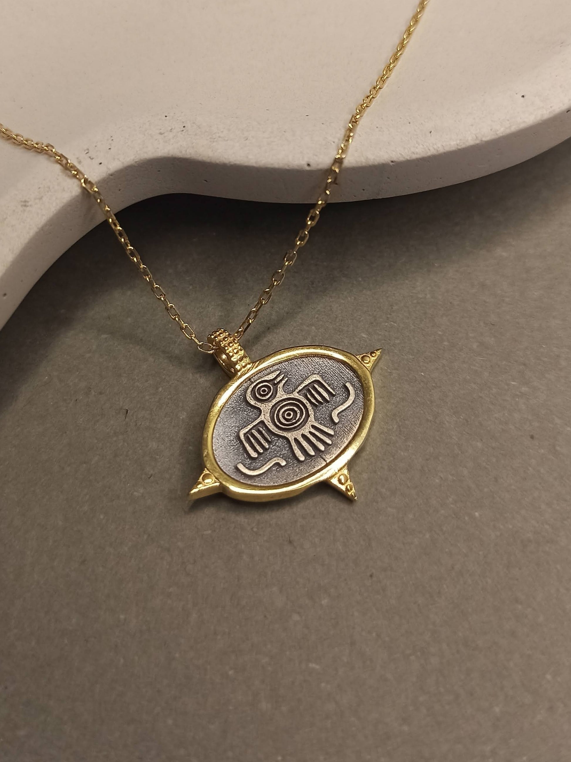 El Yapımı Detaylar: Detaylı el işçiliği, kolyeye estetik bir derinlik ve sofistike bir görünüm kazandırır. Hem şık bir aksesuar hem de anlamlı bir mitolojik takı olarak öne çıkar.