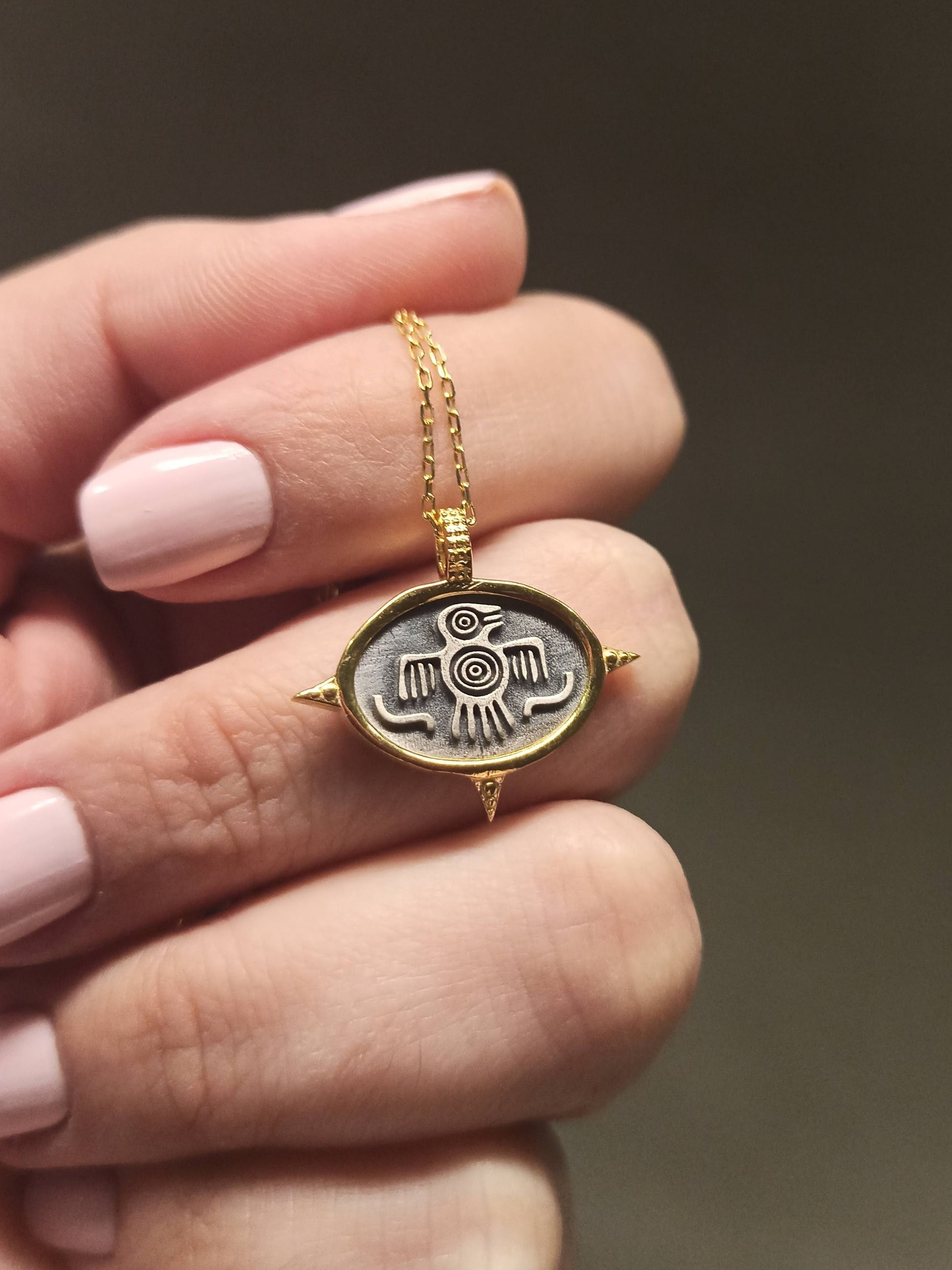 Ateş Kuşu Sembolü: Aztek ateş kuşu kolye, güç, dönüşüm, yeniden doğuş ve pozitif enerji sembolüdür. Antik Aztek kültüründen ilham alan bu tasarım, kişiye ruhsal güç, cesaret ve içsel denge kazandırır.
