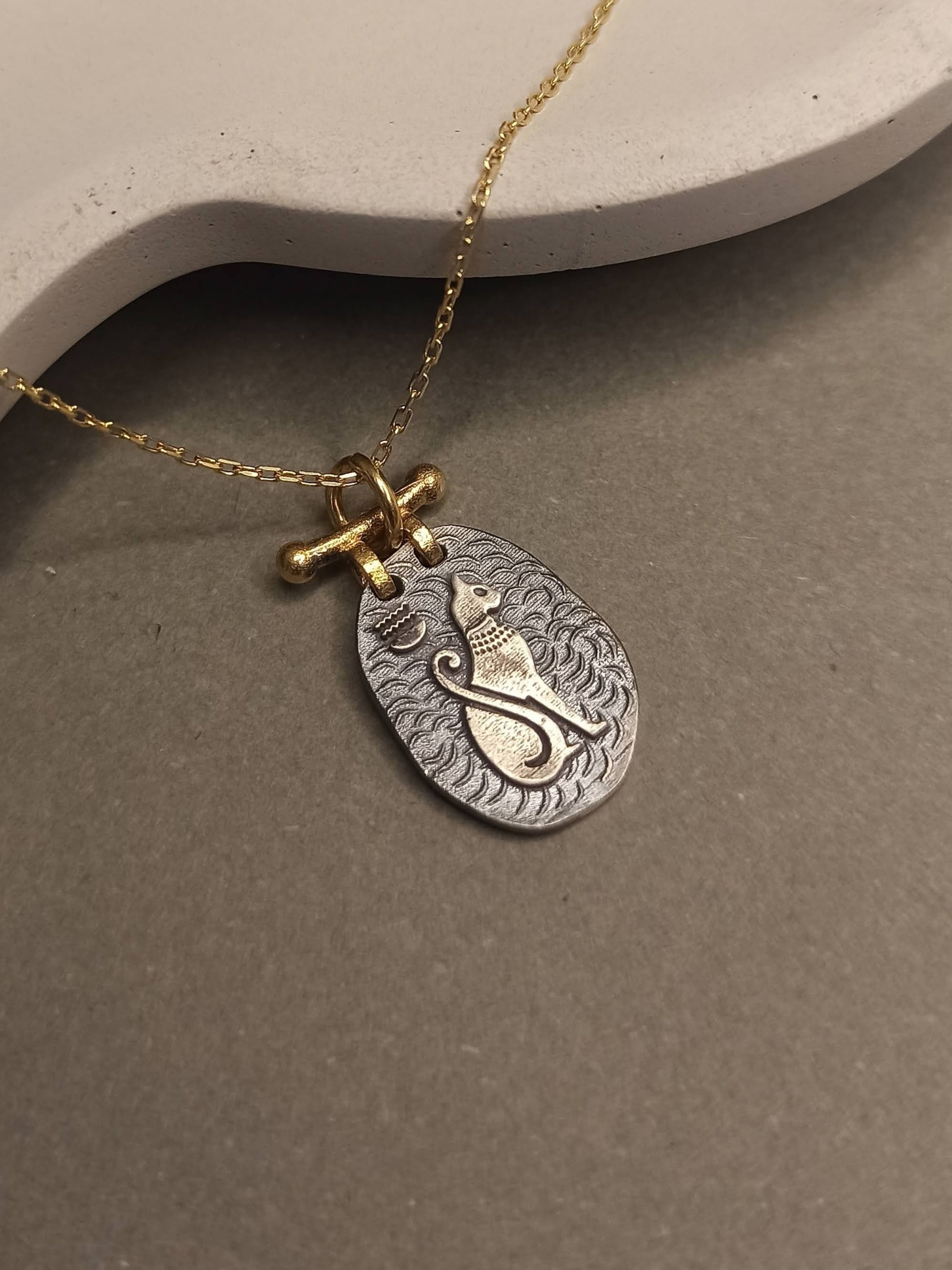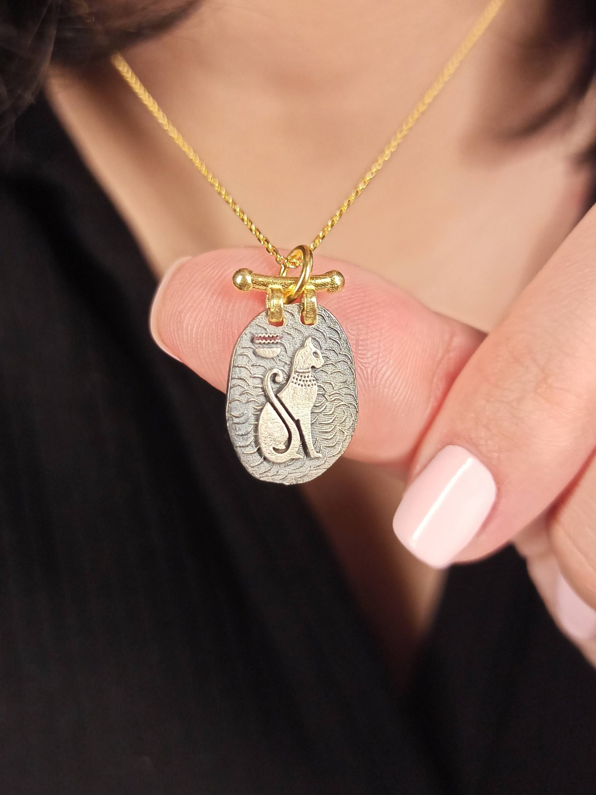 * Tasarım: Antik Mısır tanrıçası **Bastet** figürlü madalyon kolye