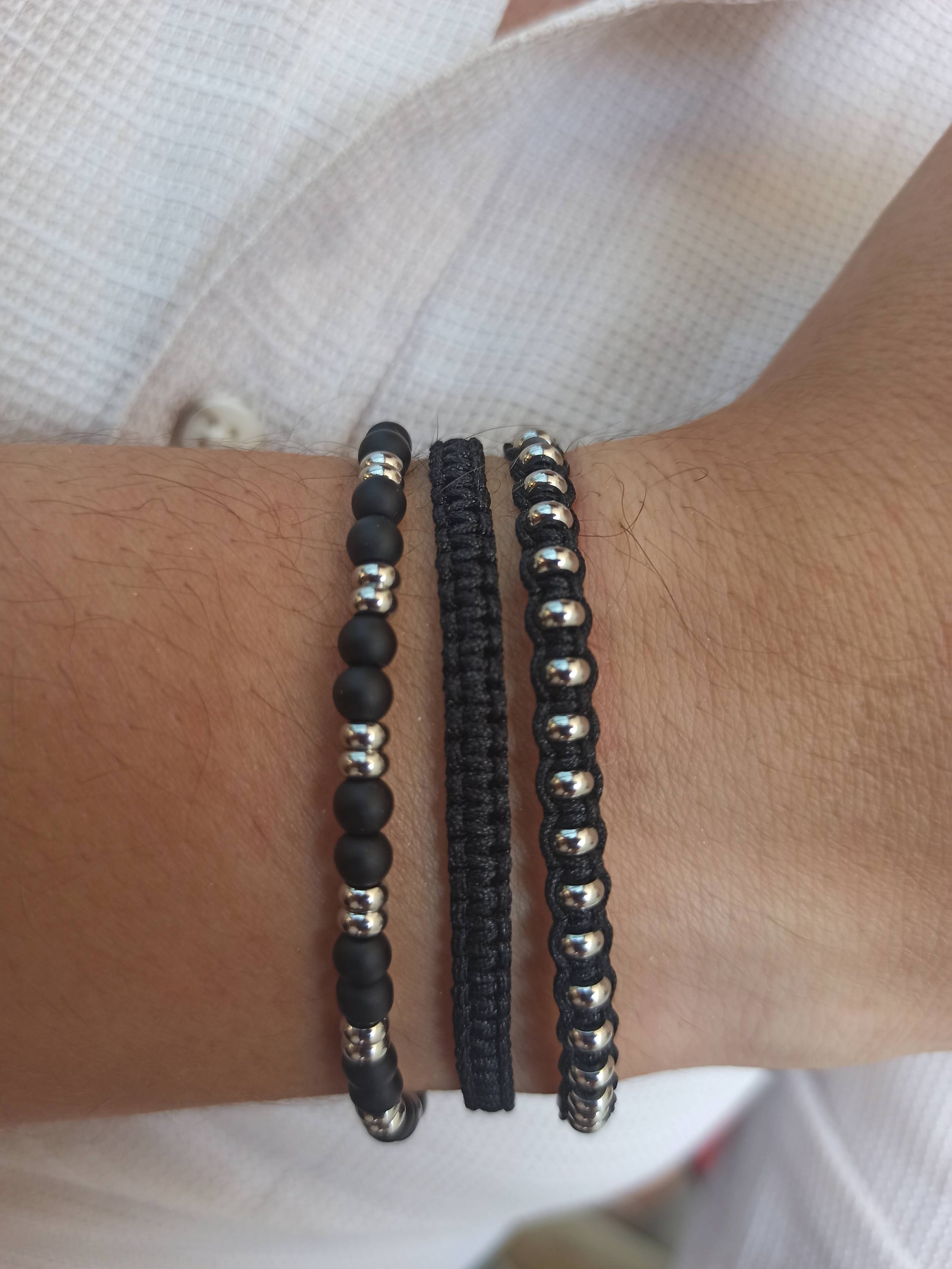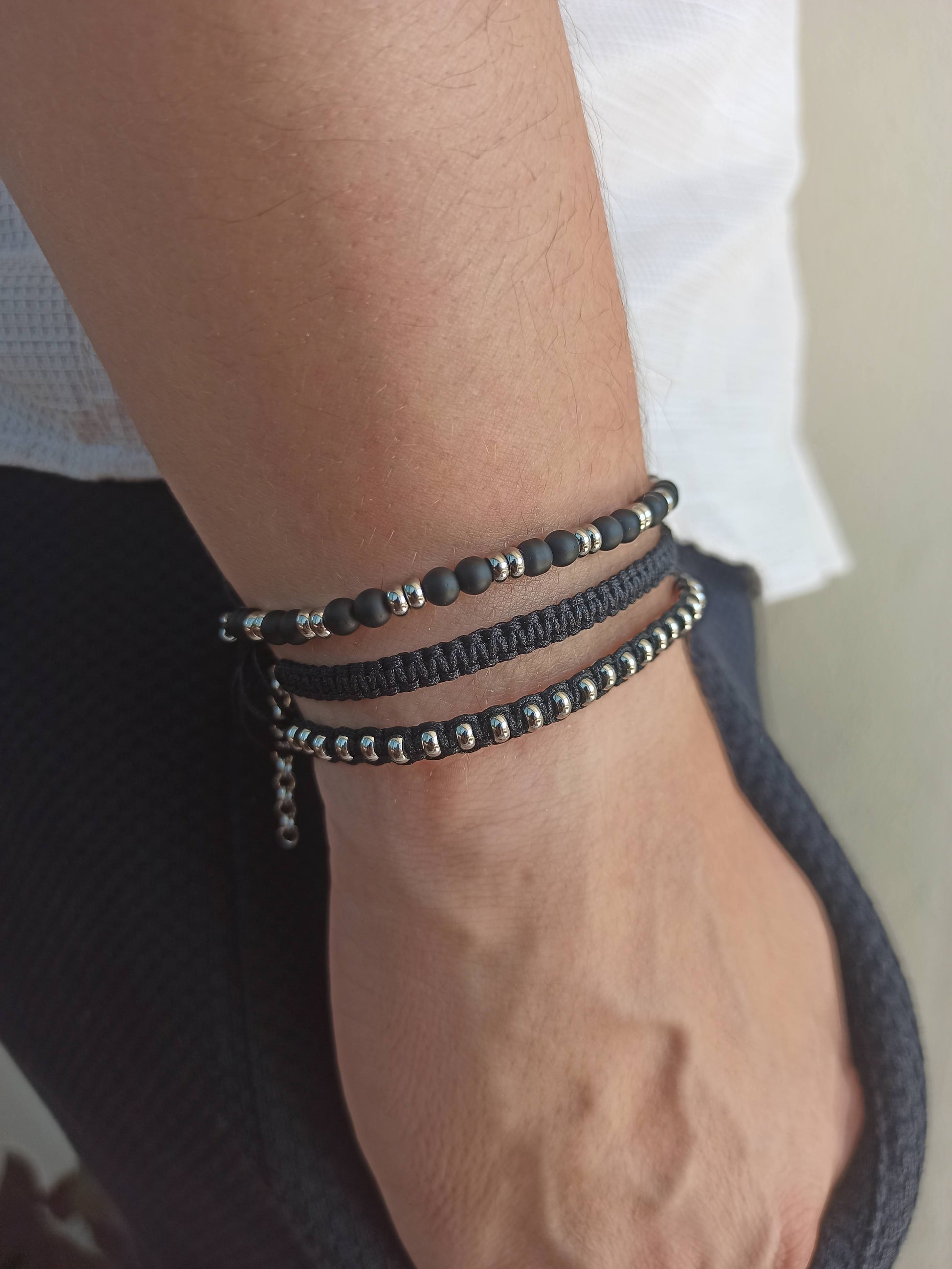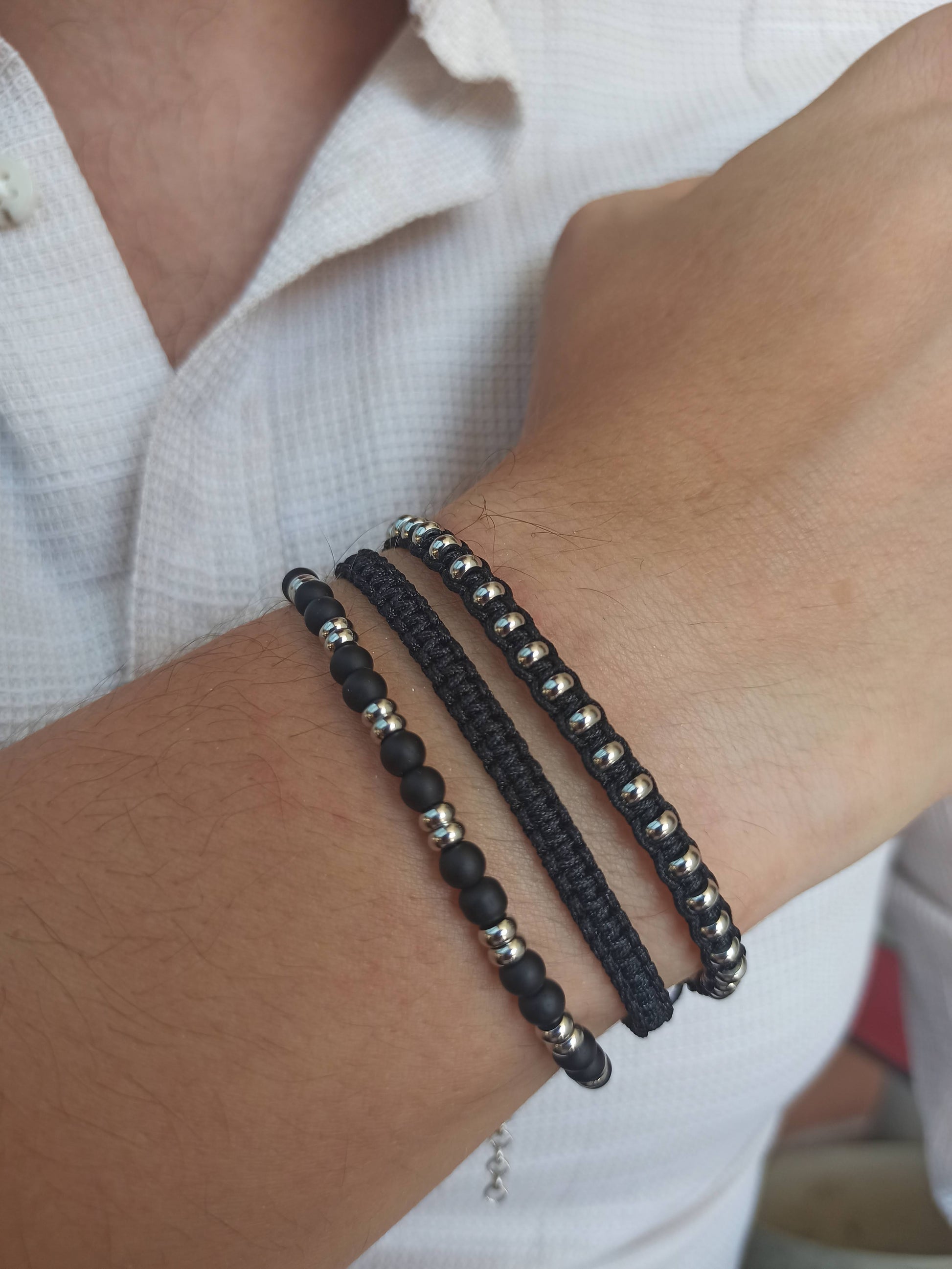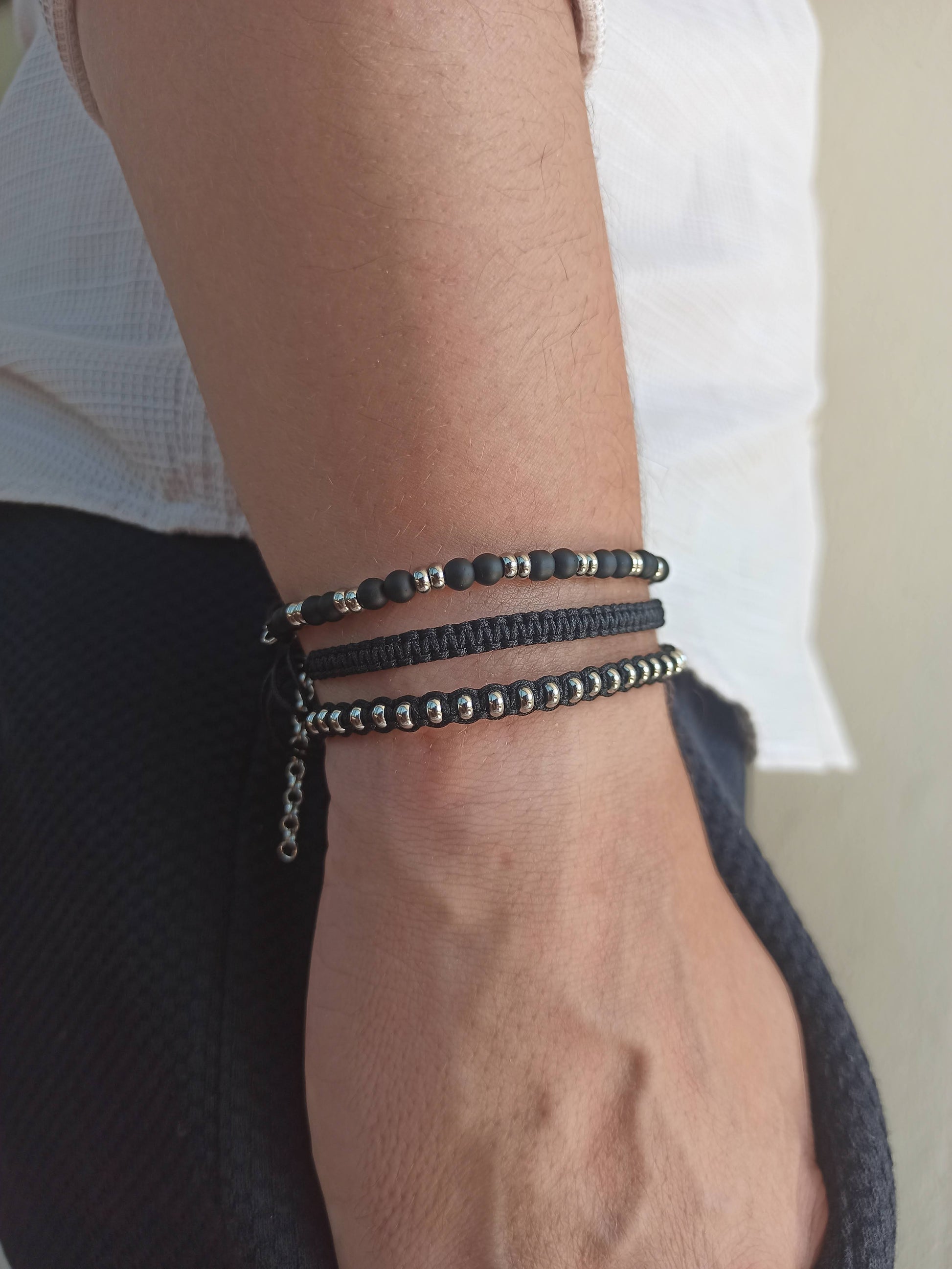 Kararmaz çelik ve mat siyah onyx doğal taşlı erkek bileklik kombini.