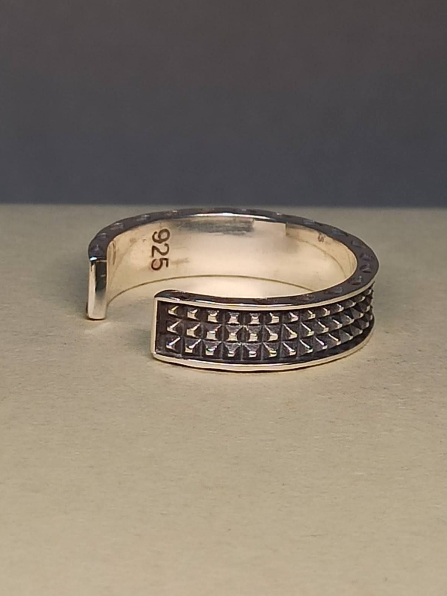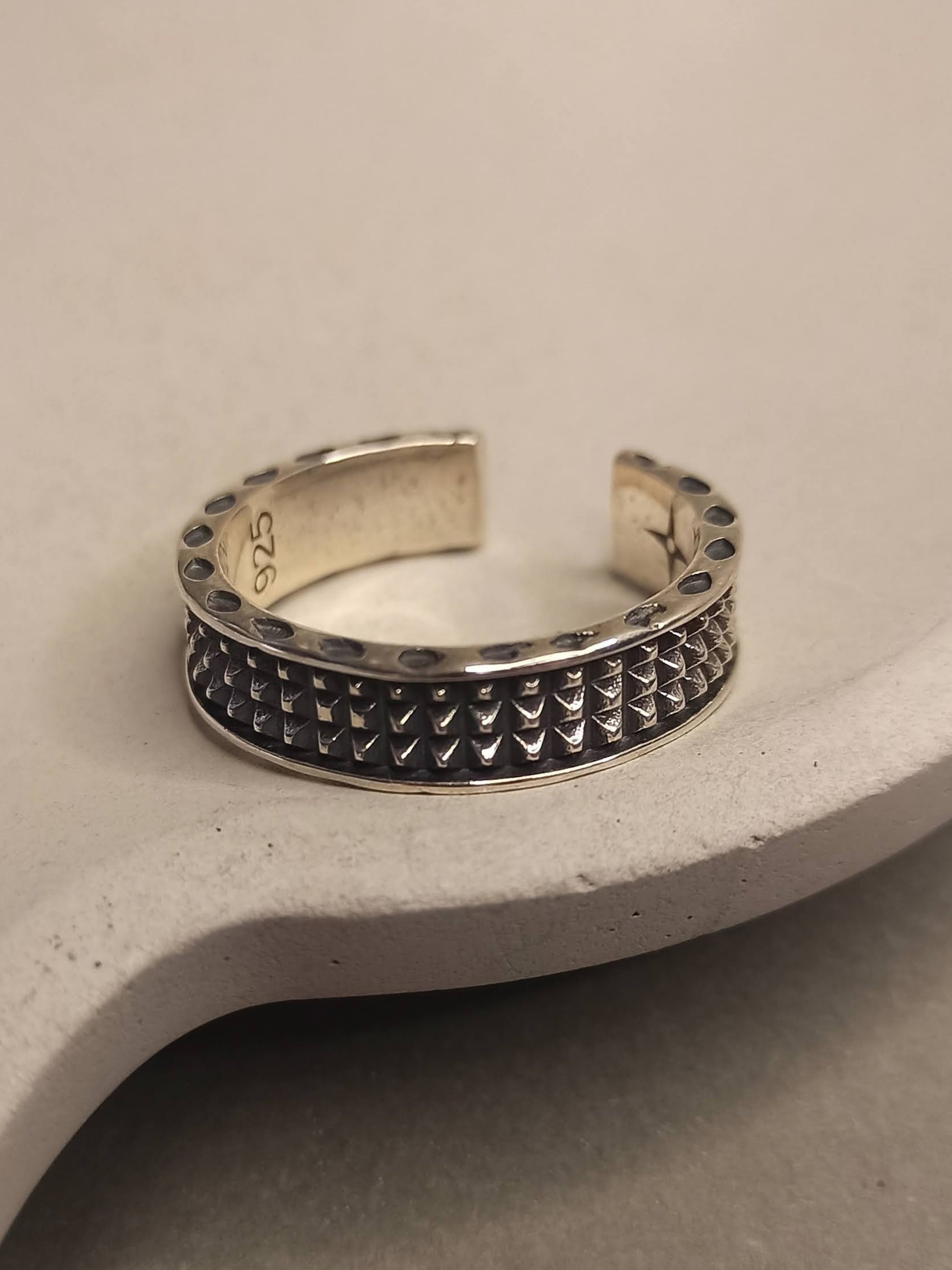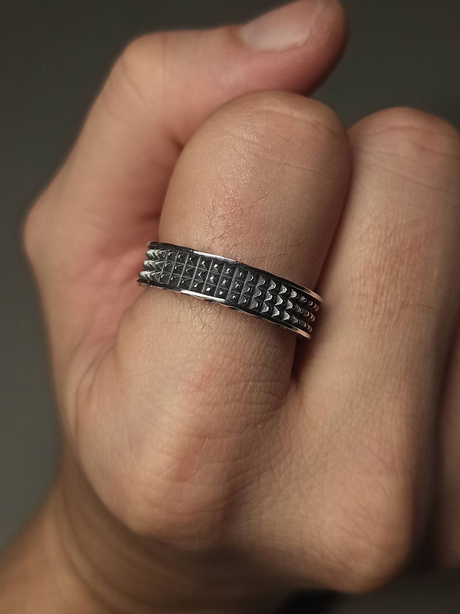 Piramit Motifli Gümüş Erkek Yüzüğü, Ayarlanabilir