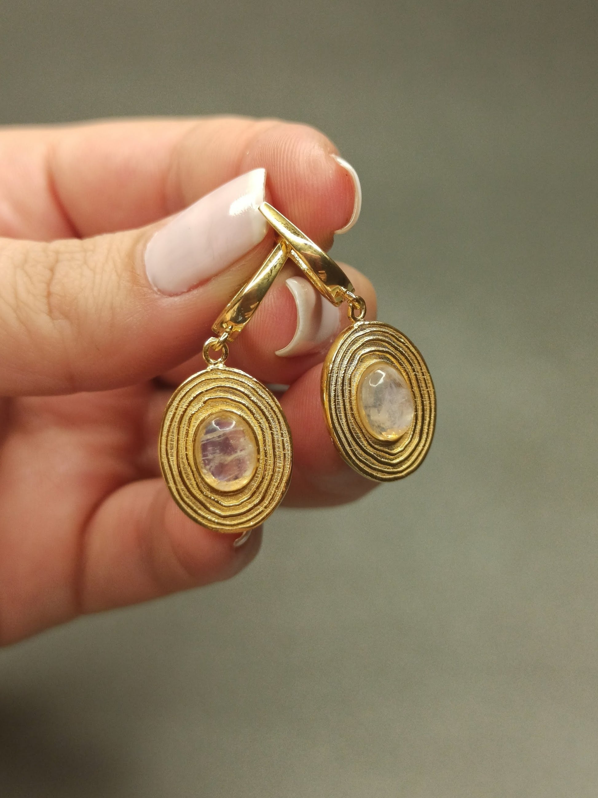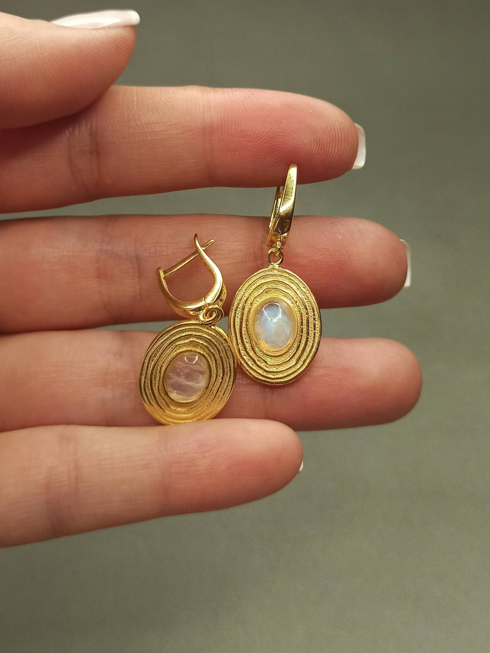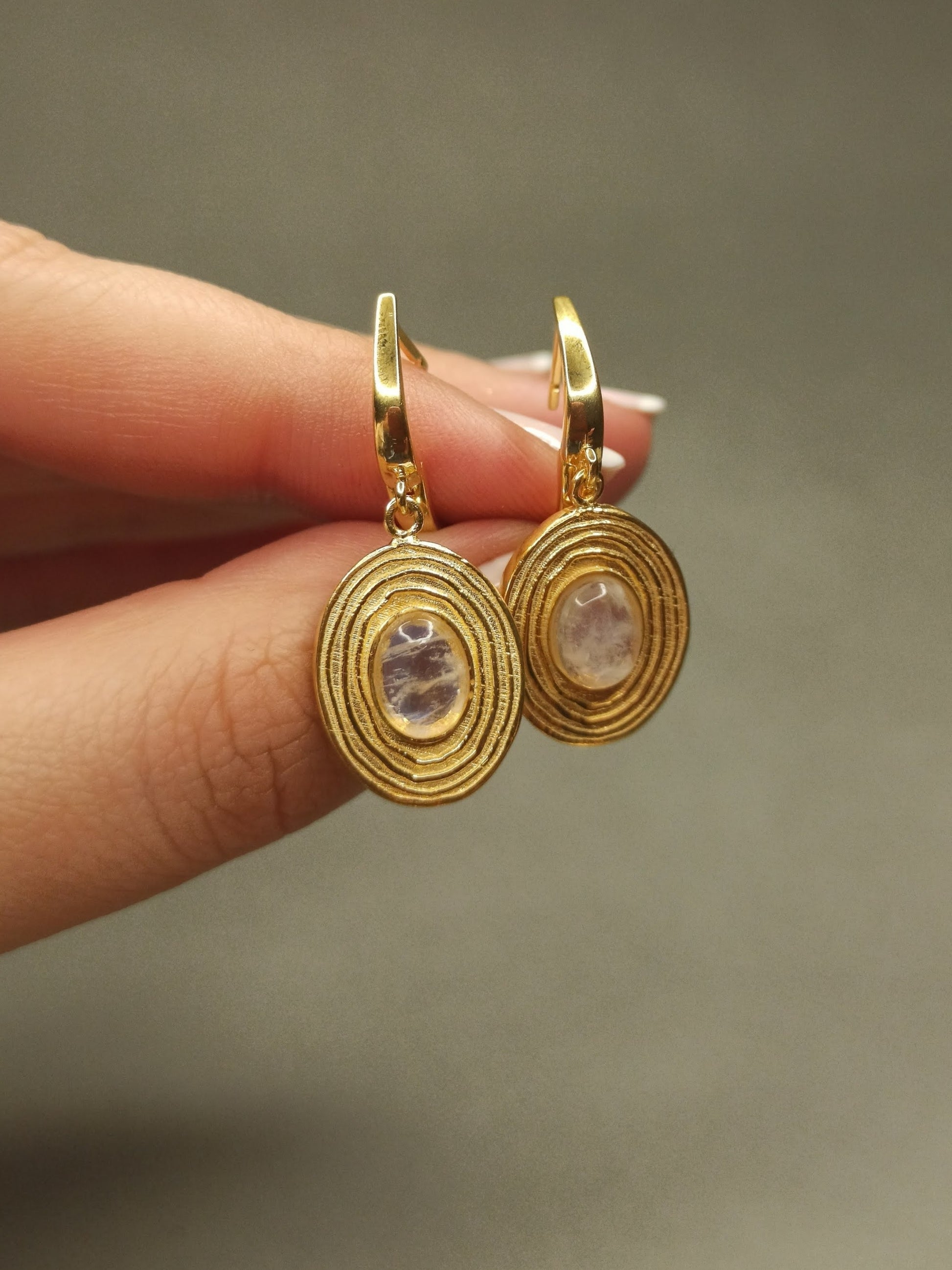 Doğal Ay Taşlı Oval Sallantılı Gümüş Küpe | BHCL Co.