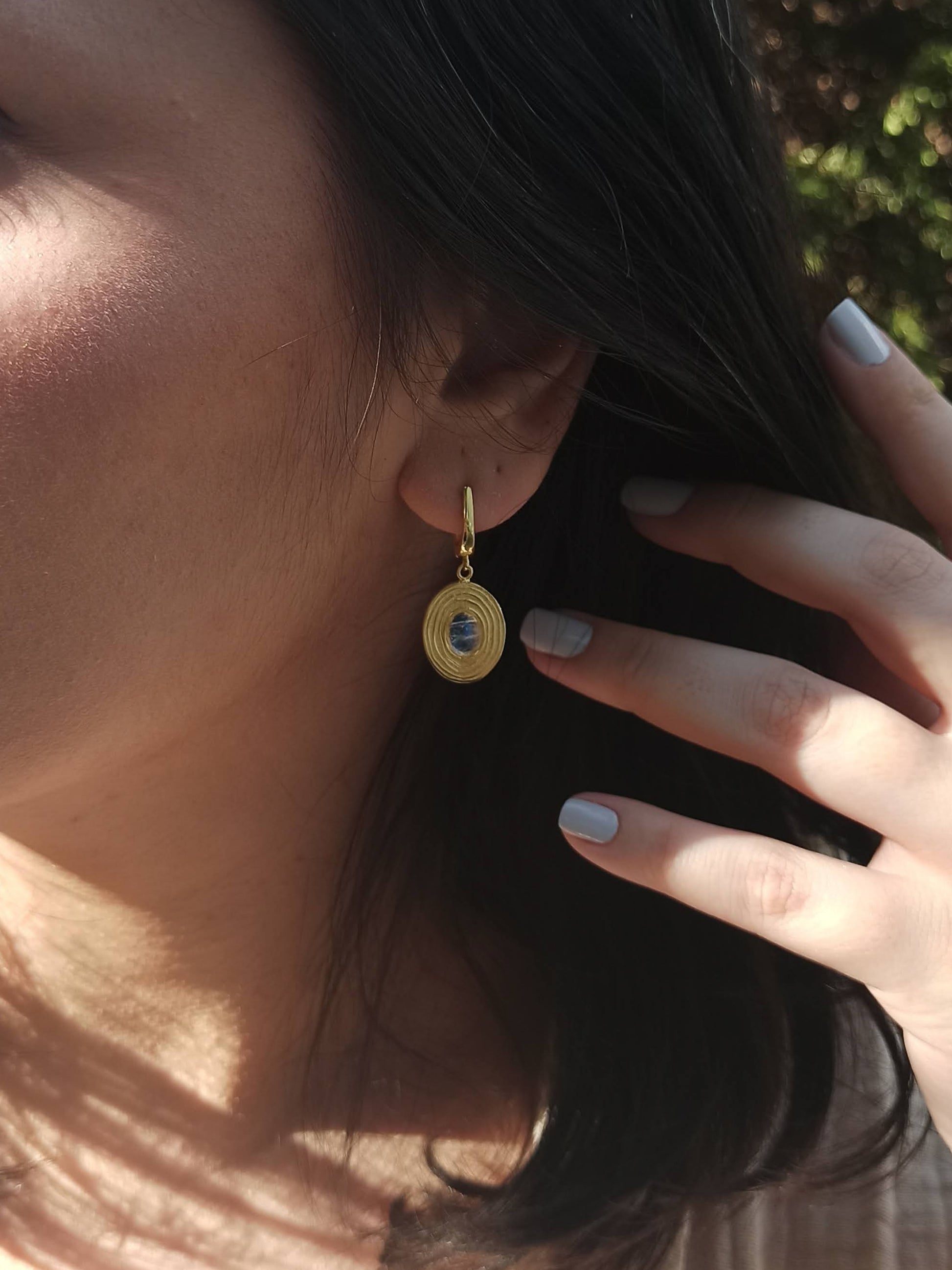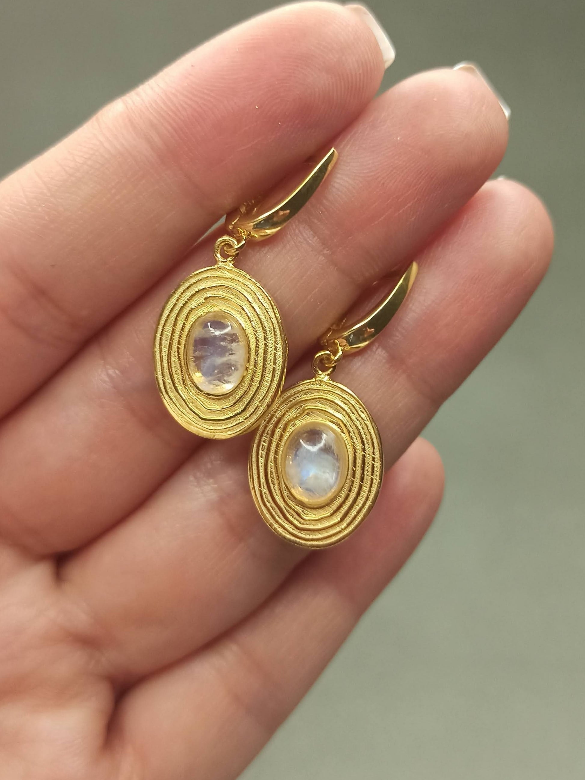 Ay taşı, duygusal denge, sezgi ve içsel huzuru simgeler. Sallantılı ve vintage tasarımlı bu küpe, dişil enerji, sezgisel farkındalık ve ruhsal dengeyi destekler. Ay taşı takılar, tarih boyunca koruma ve ruhsal güç sağladığına inanılan değerli taşlar olarak kullanılmıştır.