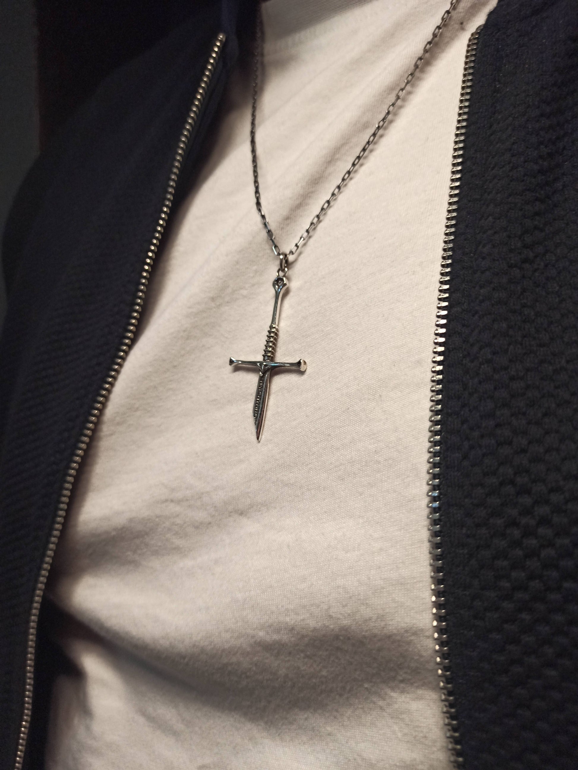 Sıradan Olanı Reddedin. Bu özel tasarım, el yapımı gümüş kılıç kolye, sadece bir takıdan fazlası; cesaretin, gücün ve efsanevi yolculukların sembolüdür. Kırık uç detayları ve üzerindeki gizemli işlemeler ile stilinize Gotik ve Fantastik bir hava katın. Unisex tasarımı sayesinde, ister kendinize ister maceraperest ruhlu sevdiklerinize unutulmaz bir hediye verebilirsiniz.