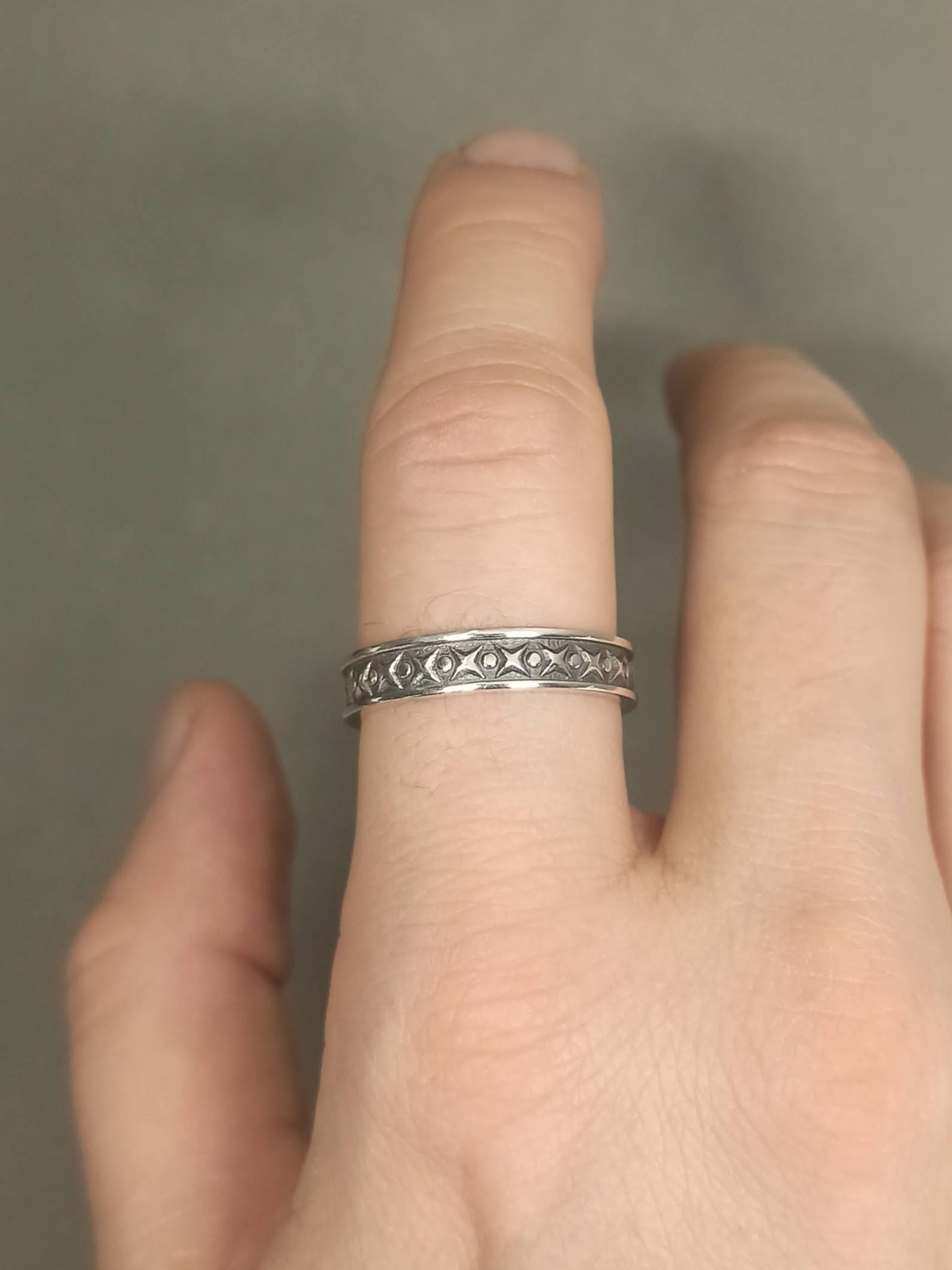 Bu zarif geometrik desenli erkek yüzük, el işçiliğiyle hazırlanmış özgün bir tasarımdır.