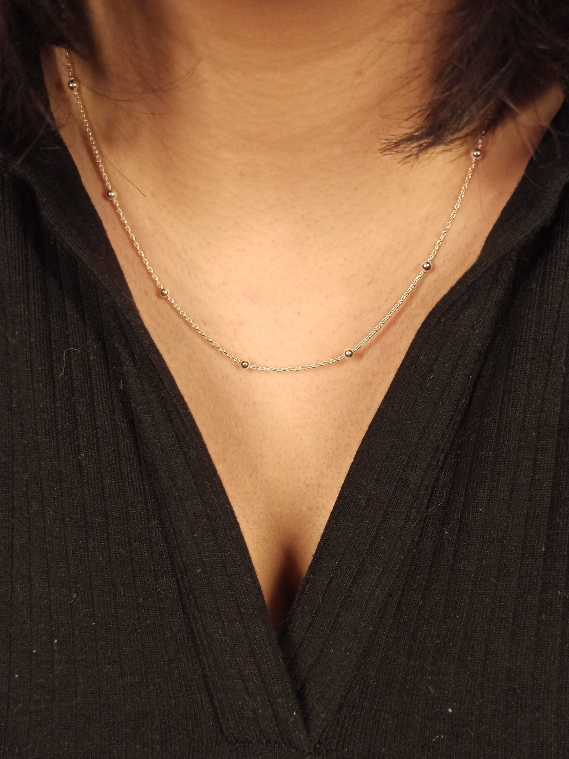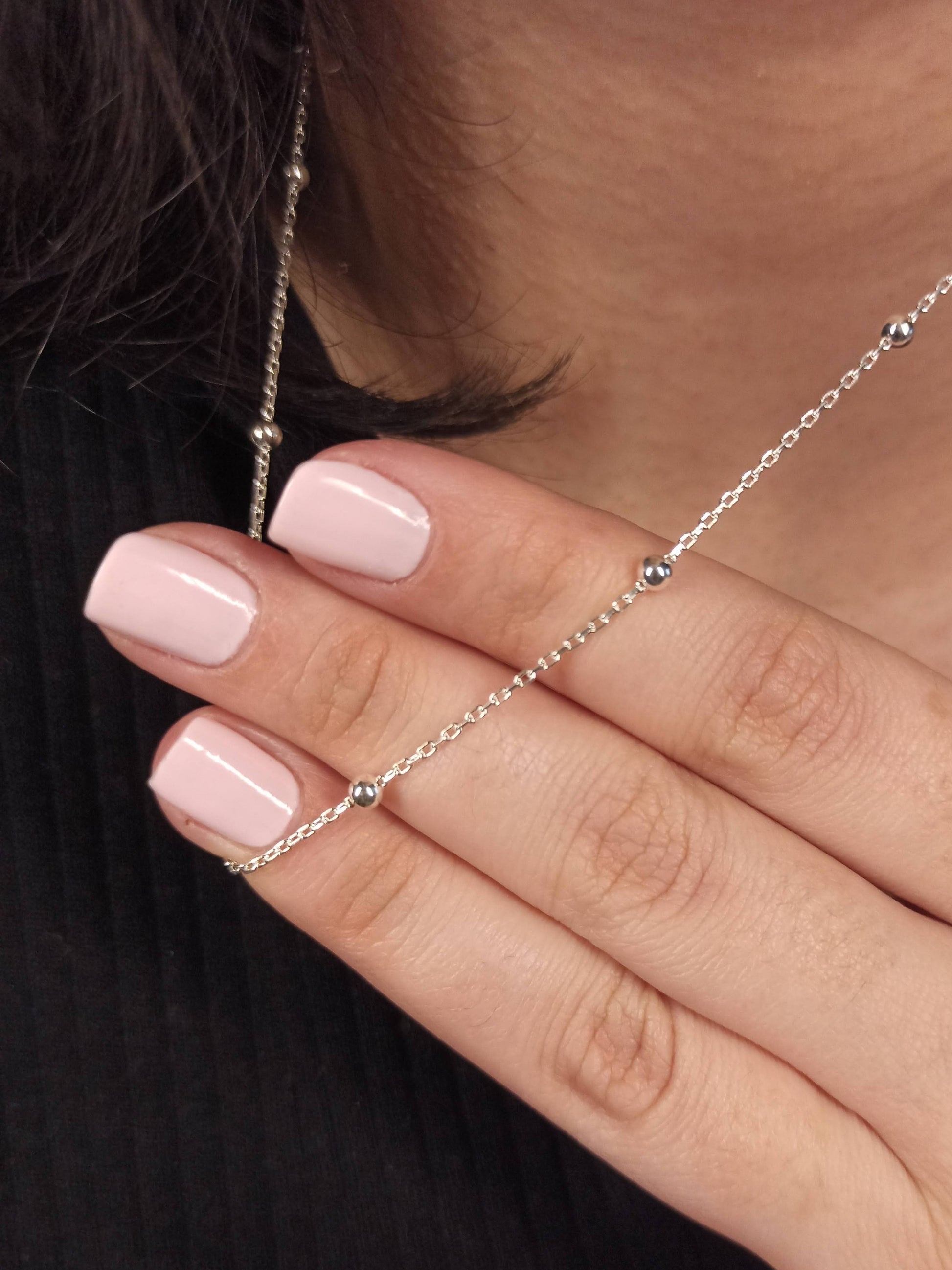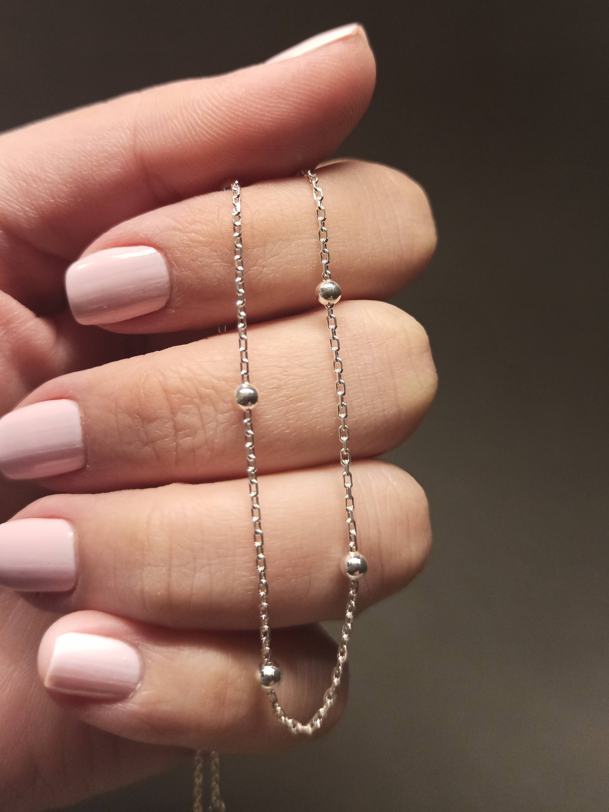 Tasarım: İnce zincir üzerine aralıklı top detayları.