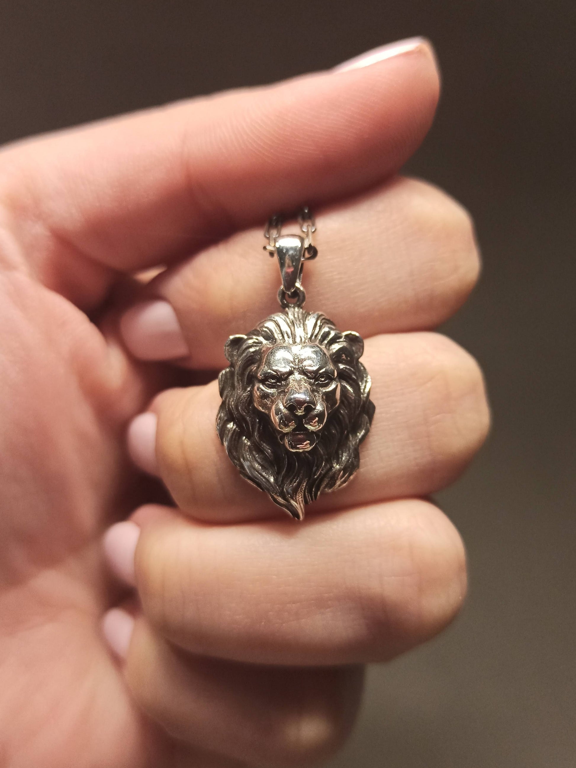 Bu aslan başı erkek kolye, gücün, cesaretin ve liderliğin sembolüdür.