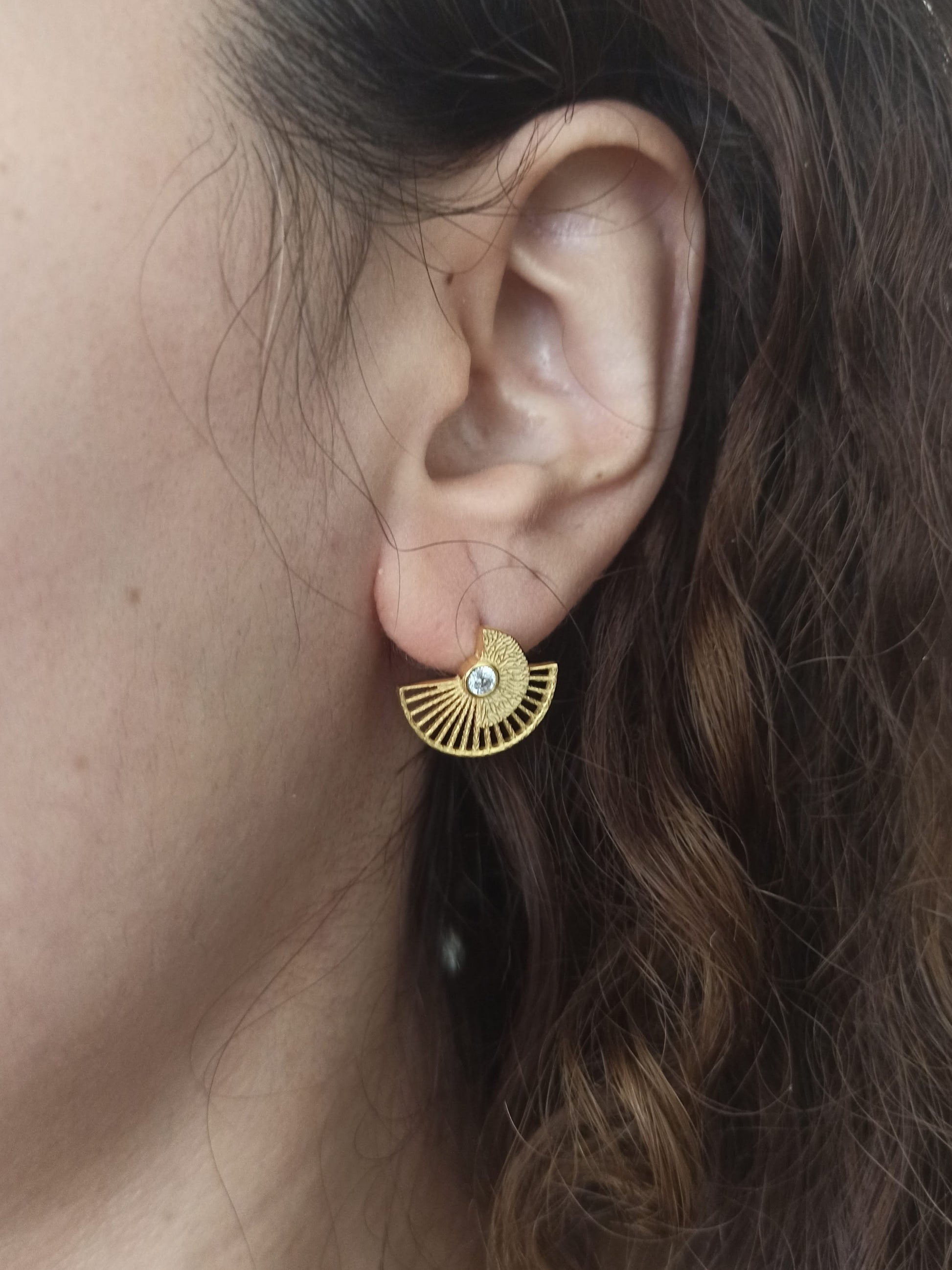 Bu zarif Japon yelpazesi küpe, geleneksel Japon estetiğinden ilham alan modern bir tasarımdır.