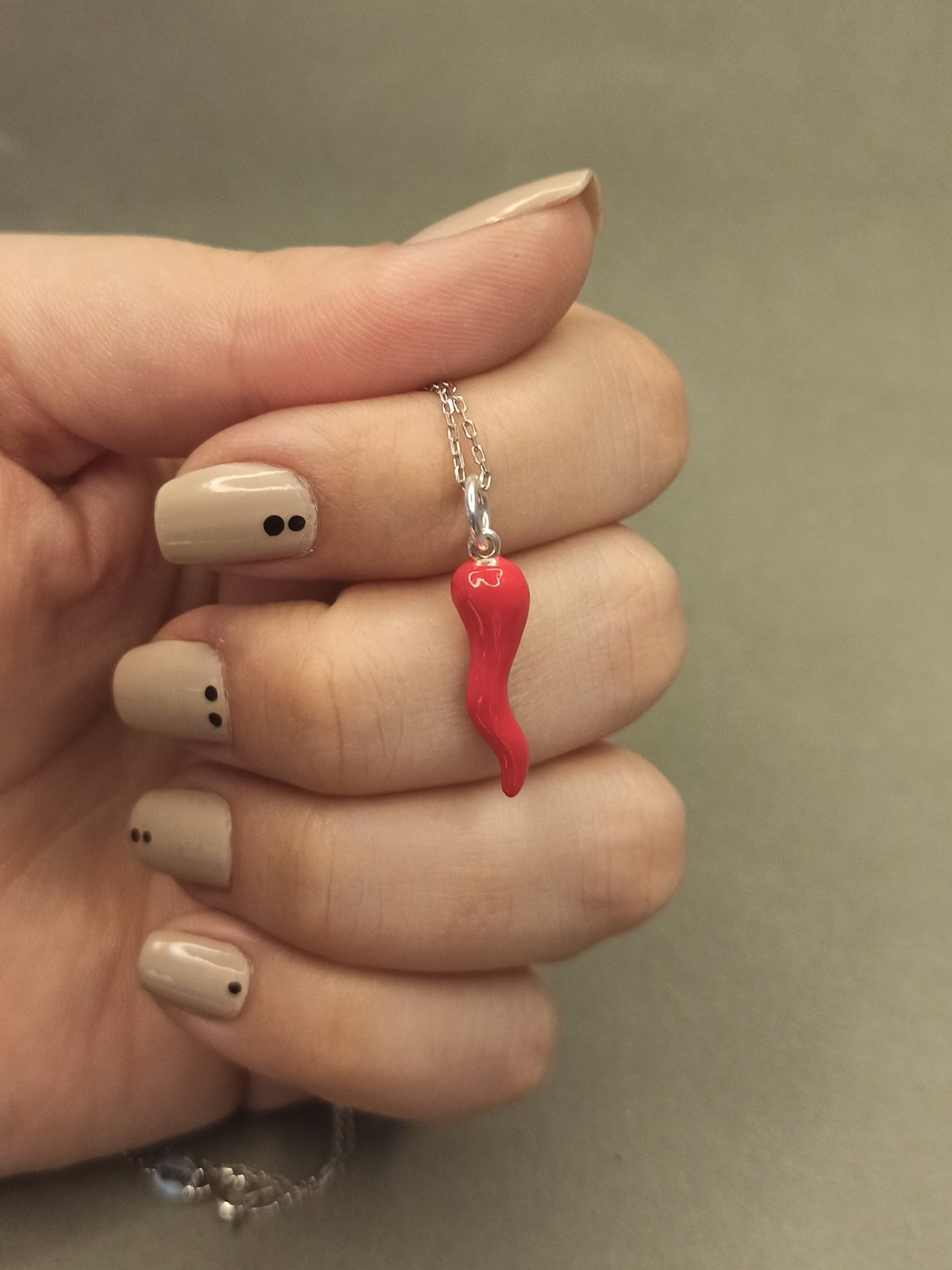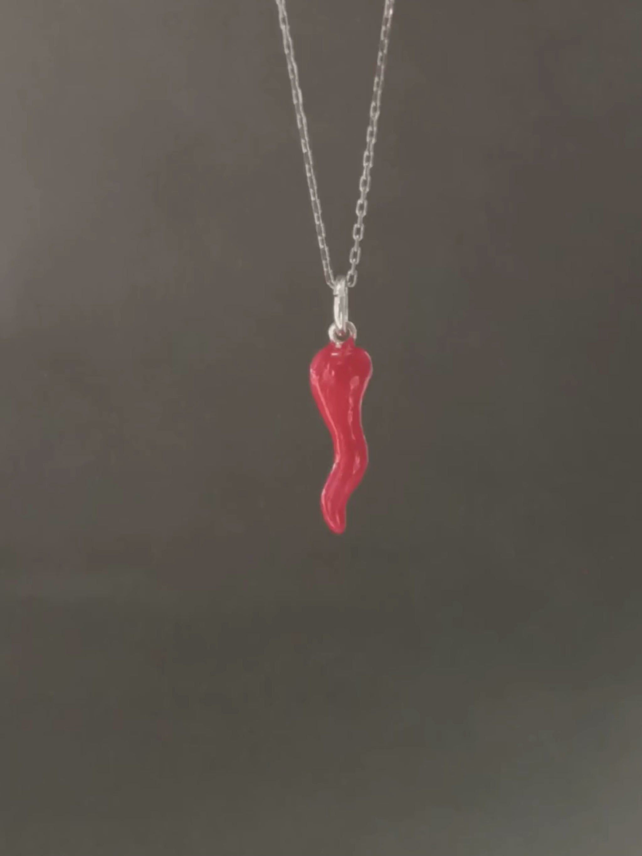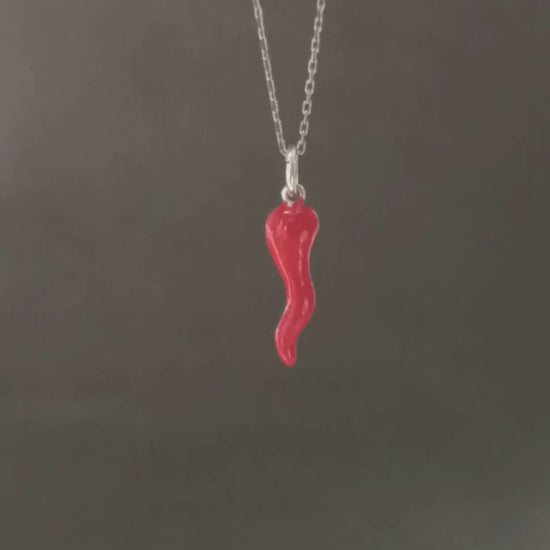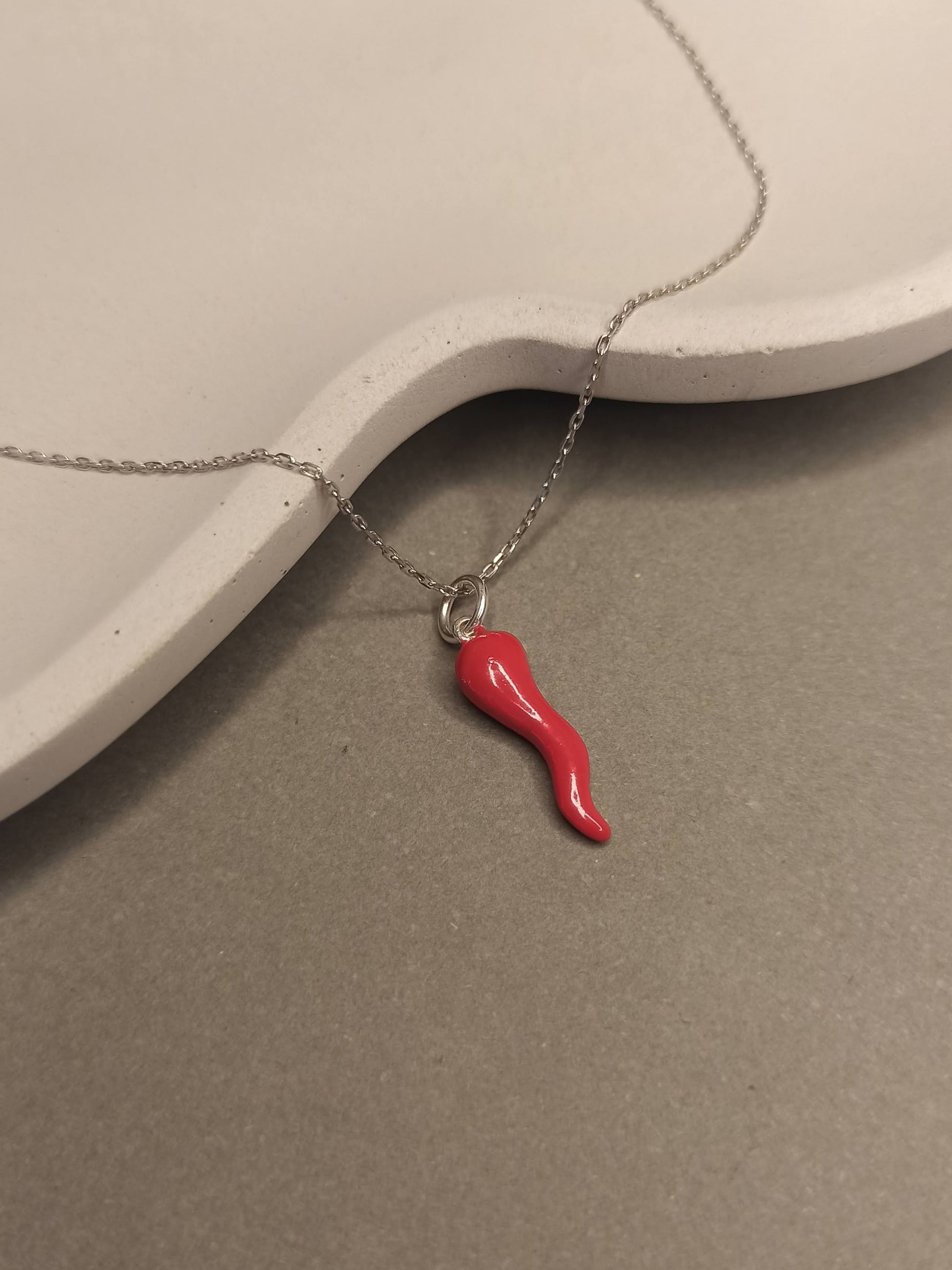Gümüş Kırmızı Cornicello Kolye, İtalyan Şans Boynuzu