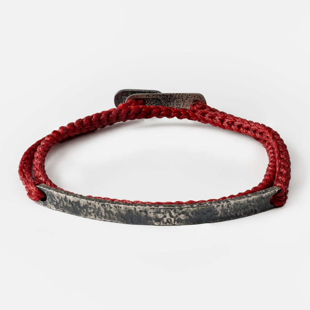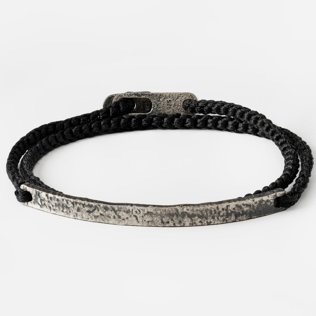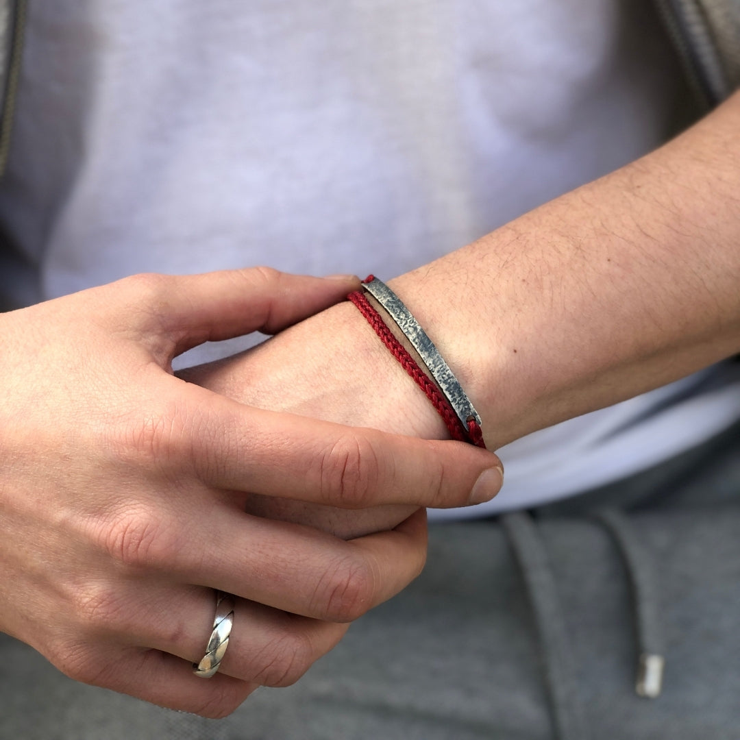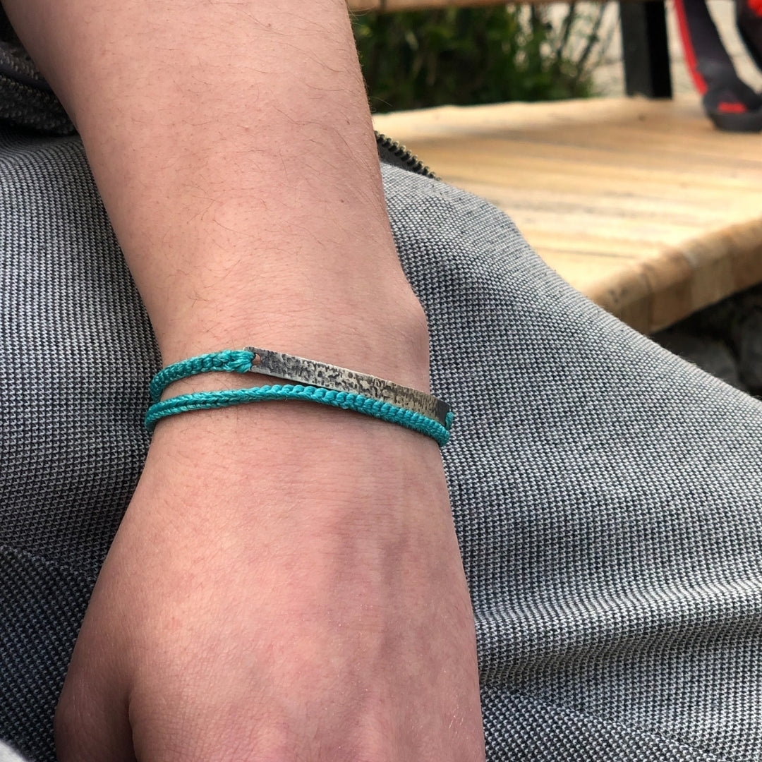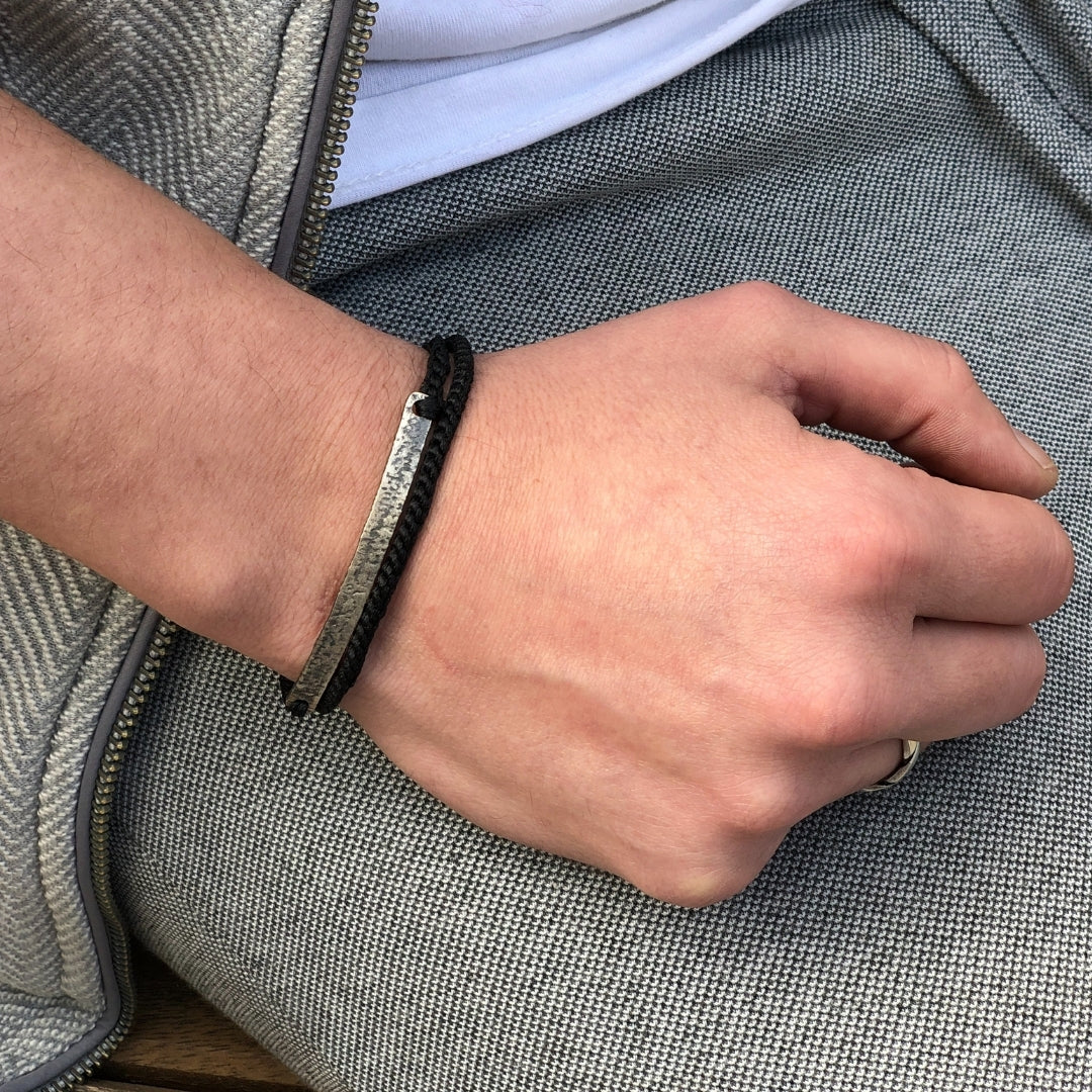 925 ayar el yapimi gümüş künye ve örme makrome ip kombinasyonu ile yapılan 2 sıra erkek bilekliği.