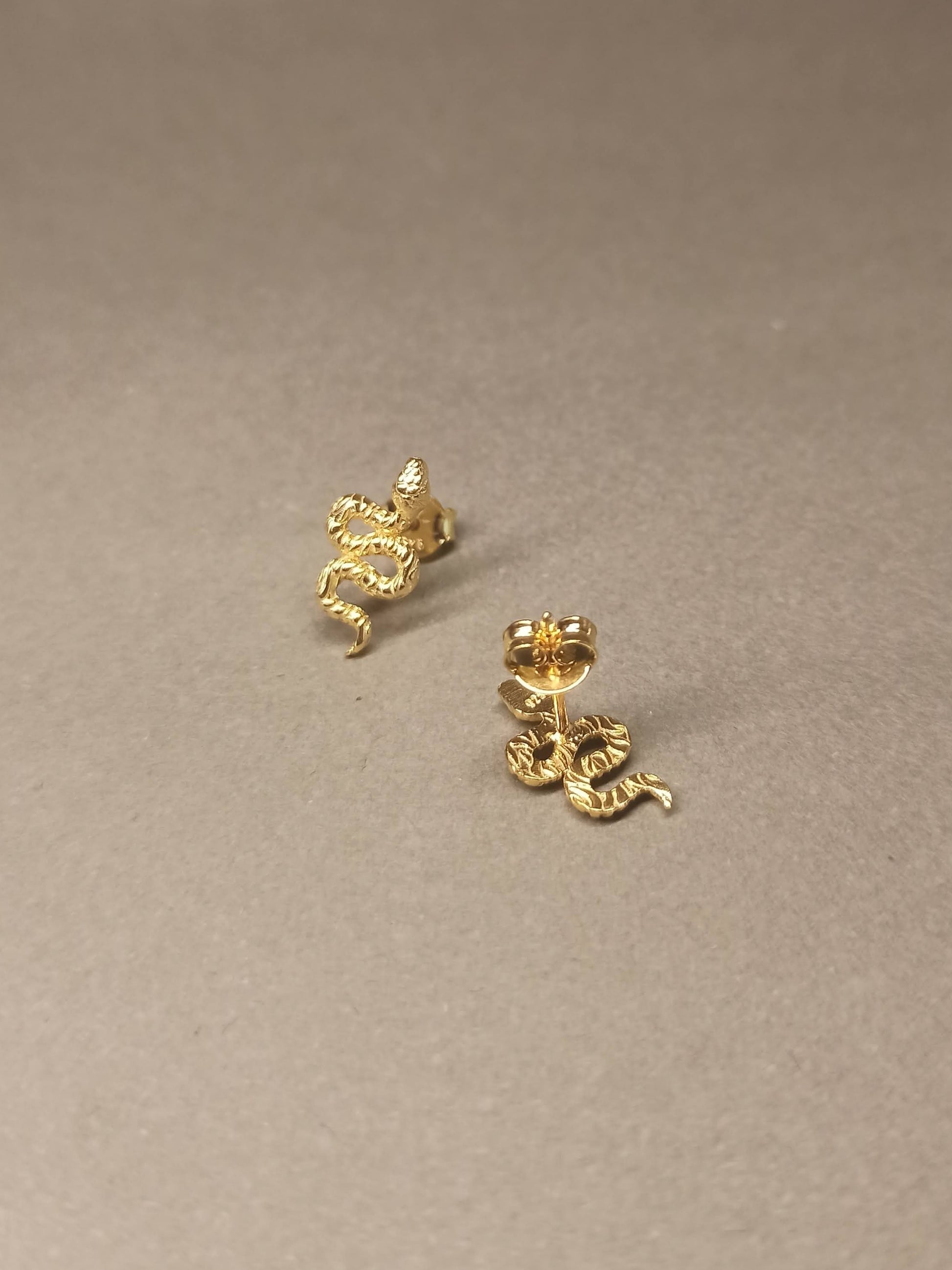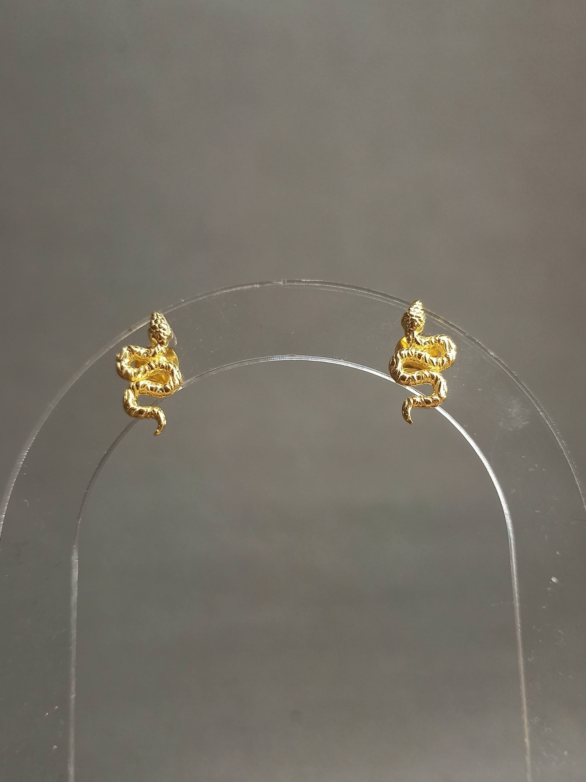 Bu zarif mini yılan formundaki küpeler, el işçiliğiyle şekillendirilmiş simgesel bir tasarıma sahiptir.