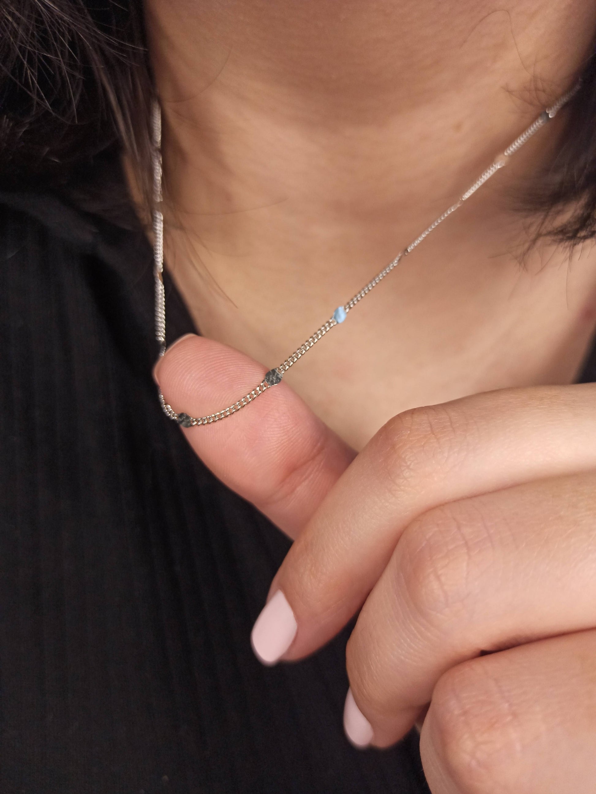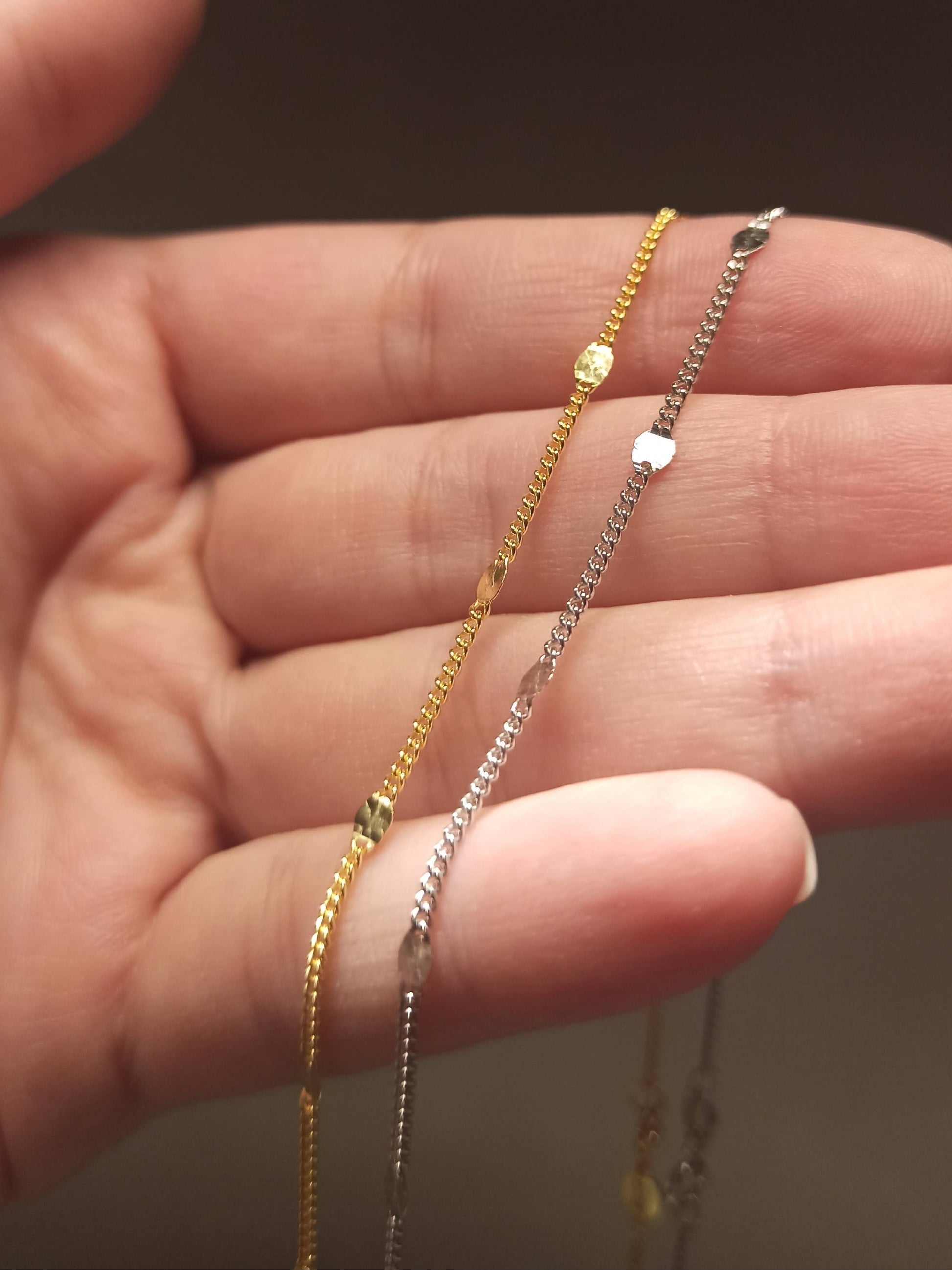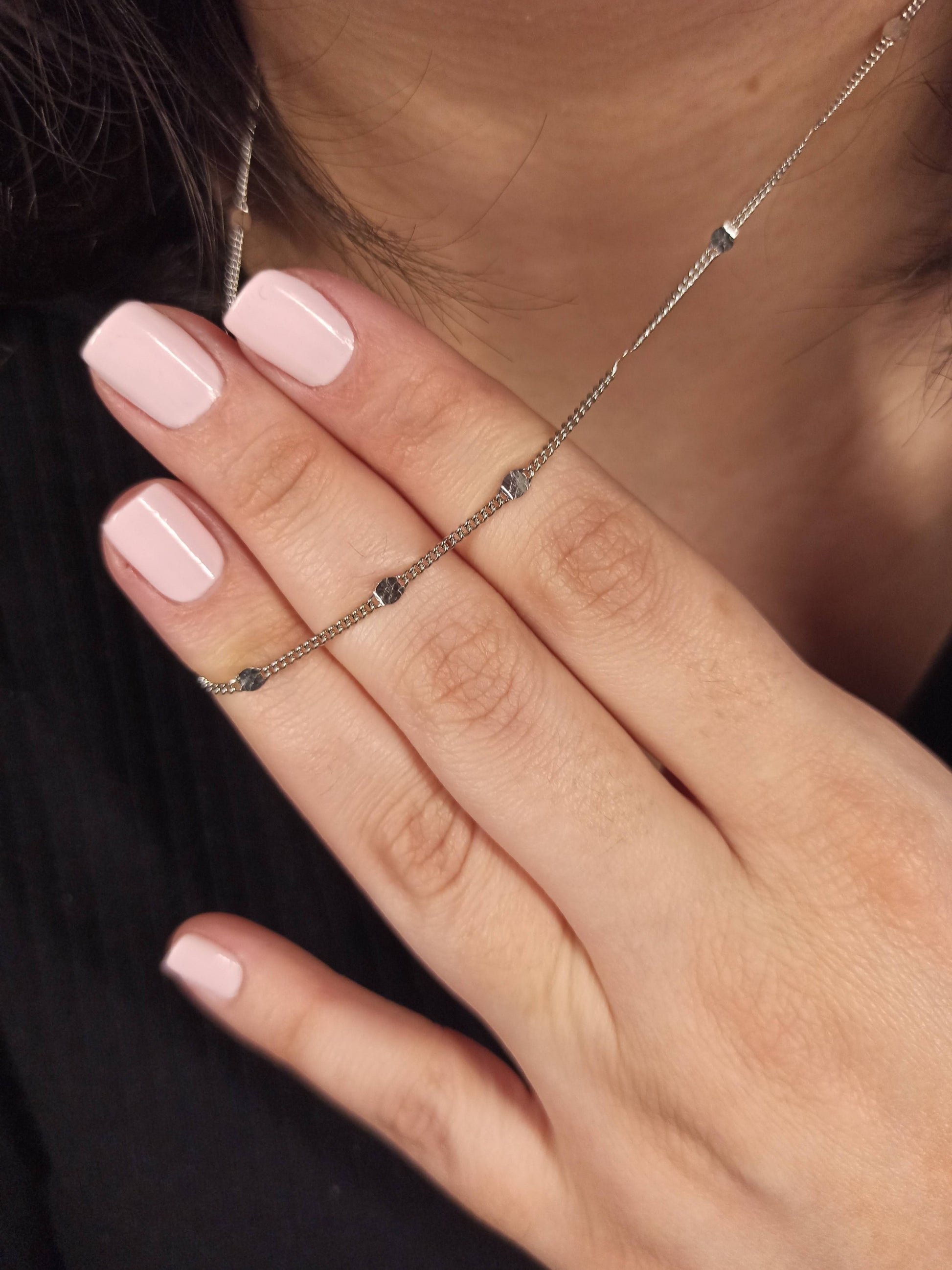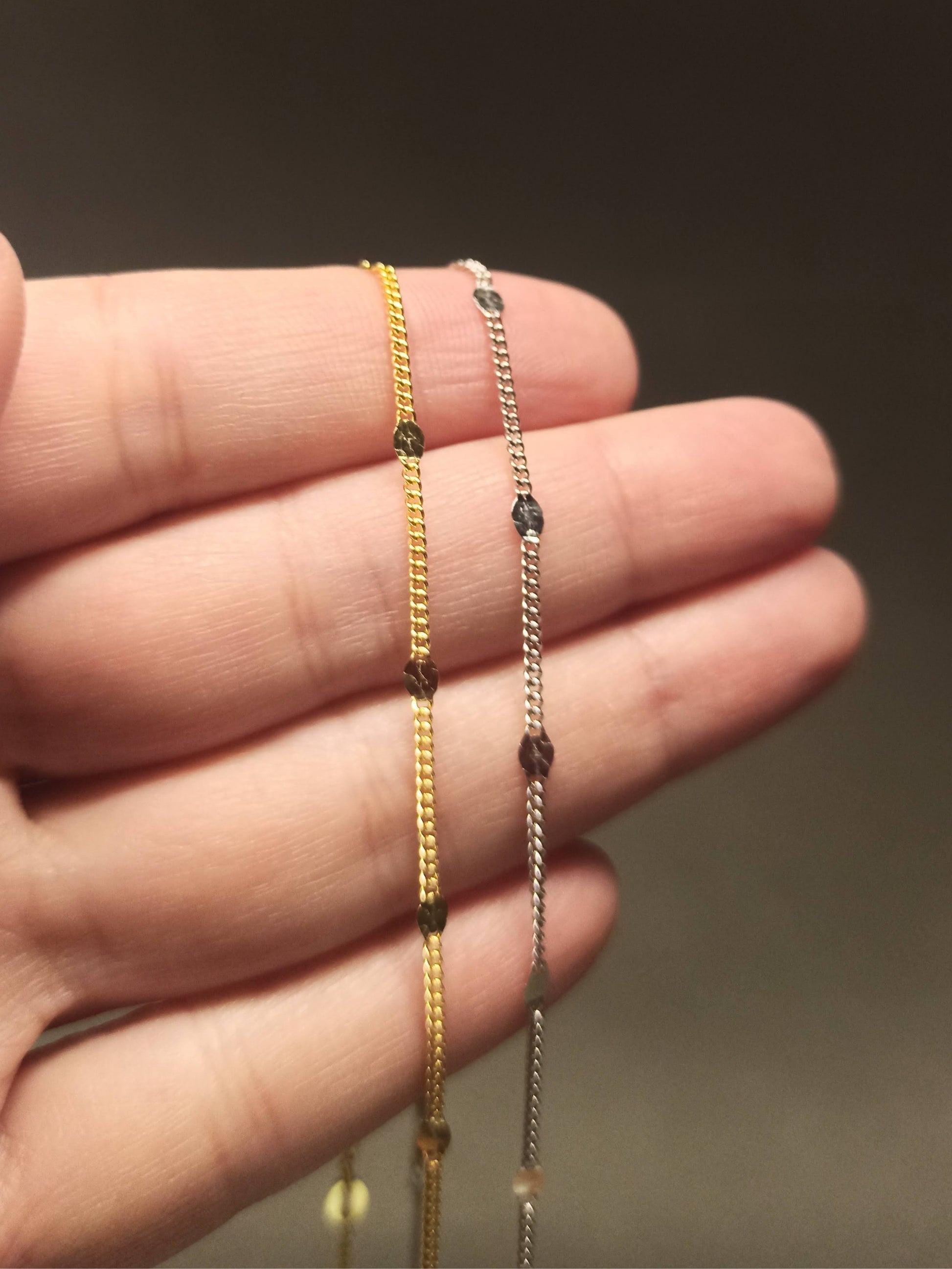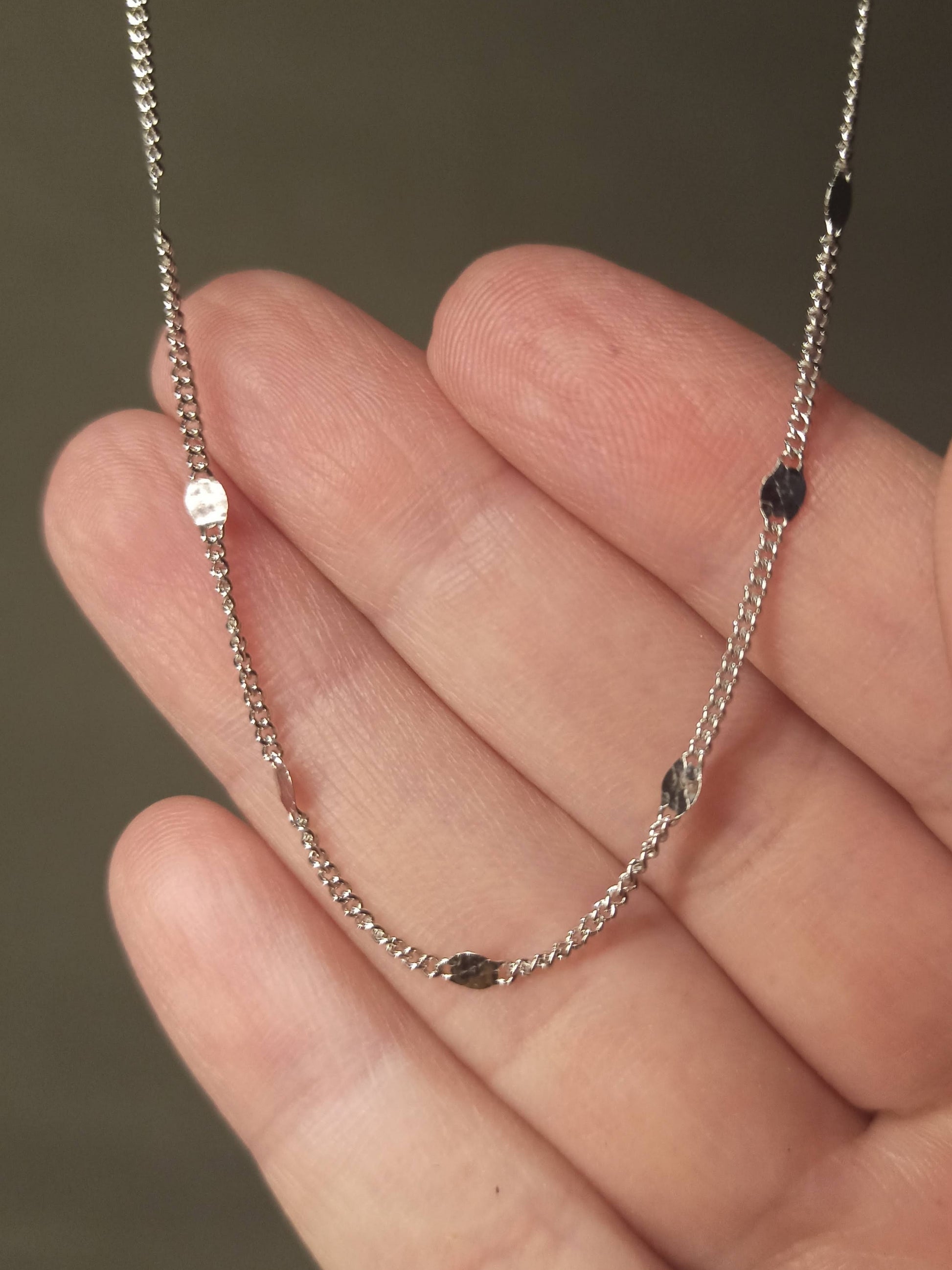 Tasarım: Gurmet tipi zincir ile aralıklı Parlak Pul detaylarının harmanlanması.